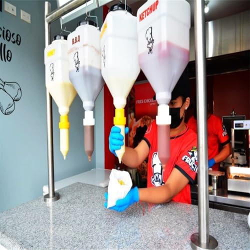 Product Description Introducing our versatile food-grade condiment squeeze bottle, designed for both home and commercial use. This dispenser features a space-saving hanging design that not only optimizes storage but also ensures durability and stability during use. With its precise dispensing capability, you can effortlessly control the amount of sauce, minimizing waste and enhancing your cooking experience. Ideal for a variety of settings such as picnics, barbecues, restaurants, or everyday meals, this squeeze bottle allows you to quickly and easily add condiments like ketchup, mustard, salad dressing, chili sauce, and more. Its large capacity of 3.5L or 5.5L means less frequent refills, making it a practical choice for busy kitchens. Crafted from high-quality food-grade material, this sauce dispenser guarantees safety while maintaining the flavor and freshness of your favorite sauces. Measuring 165 * 165 * 540mm and weighing just 500g, it’s lightweight yet robust, making it easy to handle. Whether you’re an aspiring chef or just looking to elevate your dining experience, our sauce squeeze dispenser is an essential tool for anyone who loves to cook or entertain. Add convenience and style to your kitchen with this must-have kitchen accessory. Package Includes: 1 * Sauce Dispenser. Please note that slight measurement errors may occur, and color variations may differ based on monitor settings. Thank you for your understanding!