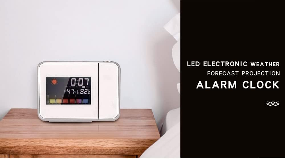 - With color LED backlight- Two time modes available: 12 / 24 hours- Date display (month / day / week)- 4 weather forecast forms (sunny, cloudy, cloudy and rainy)- Comfort display function- Alarm clock supports snooze mode- Displays the time, temperature, humidity, weather and calendar.- With Max / Min temperature and humidity records.- 180° rotating projection alarm. You can project time onto a wall or ceiling.