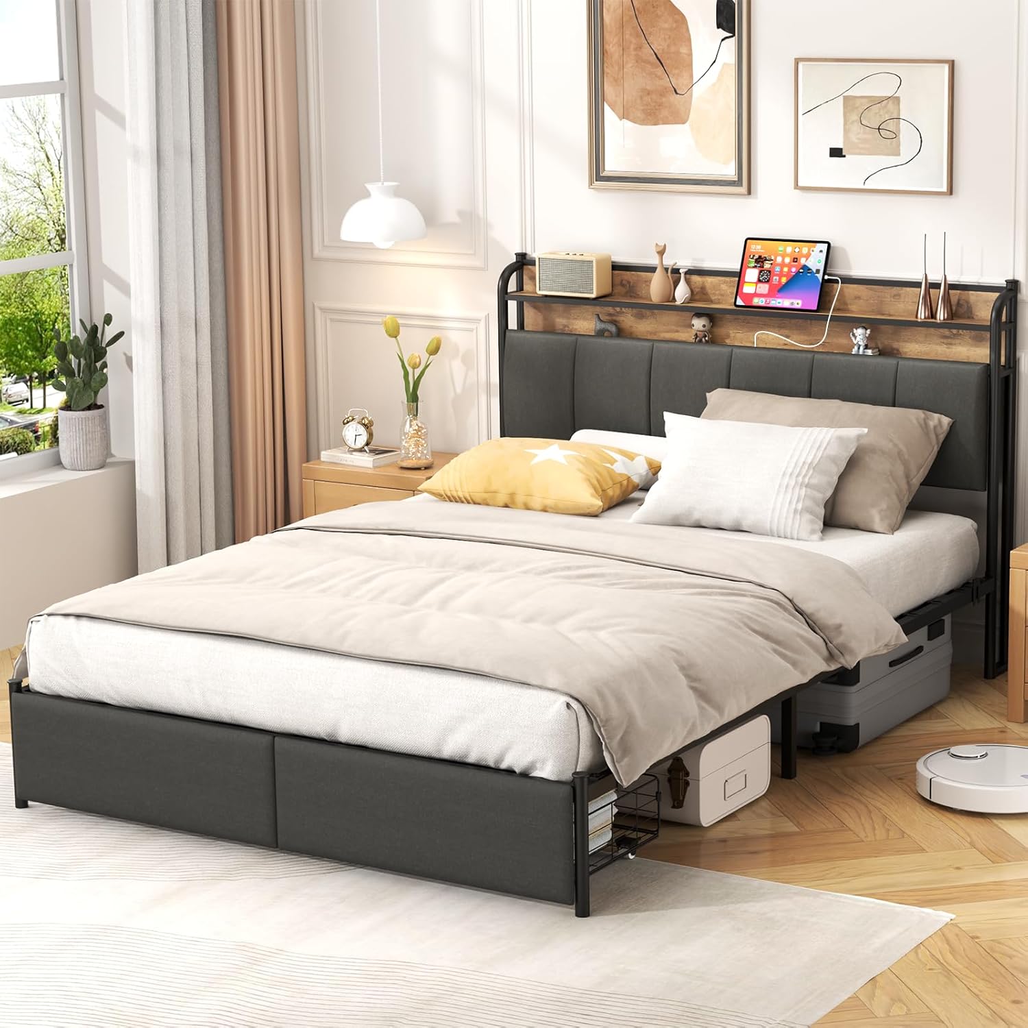 Specification: Size: Queen Color: Grey Dimension: 83.5*54.4*44 inch(L x W x H) Material: Metal Weight Capacity: 800 LBS