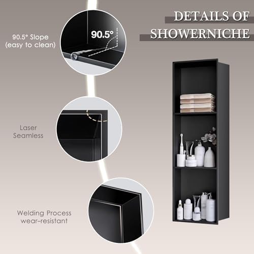 Transform your bathroom into a modern oasis with our thoughtfully designed shower niche. This stylish and functional storage solution is perfect for organizing your bathing essentials, cosmetics, and decorative items, ensuring your space remains tidy and clutter-free. Crafted from high-quality stainless steel, this niche combines durability with a sleek, contemporary look that complements any bathroom decor. Installation is a breeze with its one-piece construction, allowing for quick and hassle-free setup without the need for additional assembly or tiles. Whether you're renovating your shower or simply looking to enhance its functionality, this niche seamlessly integrates into your design, providing the perfect blend of style and practicality. The waterproof and leak-proof features of our shower niche ensure it withstands the humid environment of your bathroom, making it a reliable choice for long-term use. Elevate your shower experience by keeping your essentials within reach while maintaining an elegant appearance. Specifications: - Material: Premium Stainless Steel - Color: Sleek Black Package includes: - 1 x Shower Niche Please note: - Manual measurements may result in slight size variations. - Actual product color may differ slightly from what is displayed due to monitor settings. Upgrade your bathroom with our shower niche and enjoy the perfect combination of style, functionality, and convenience in your daily routine.