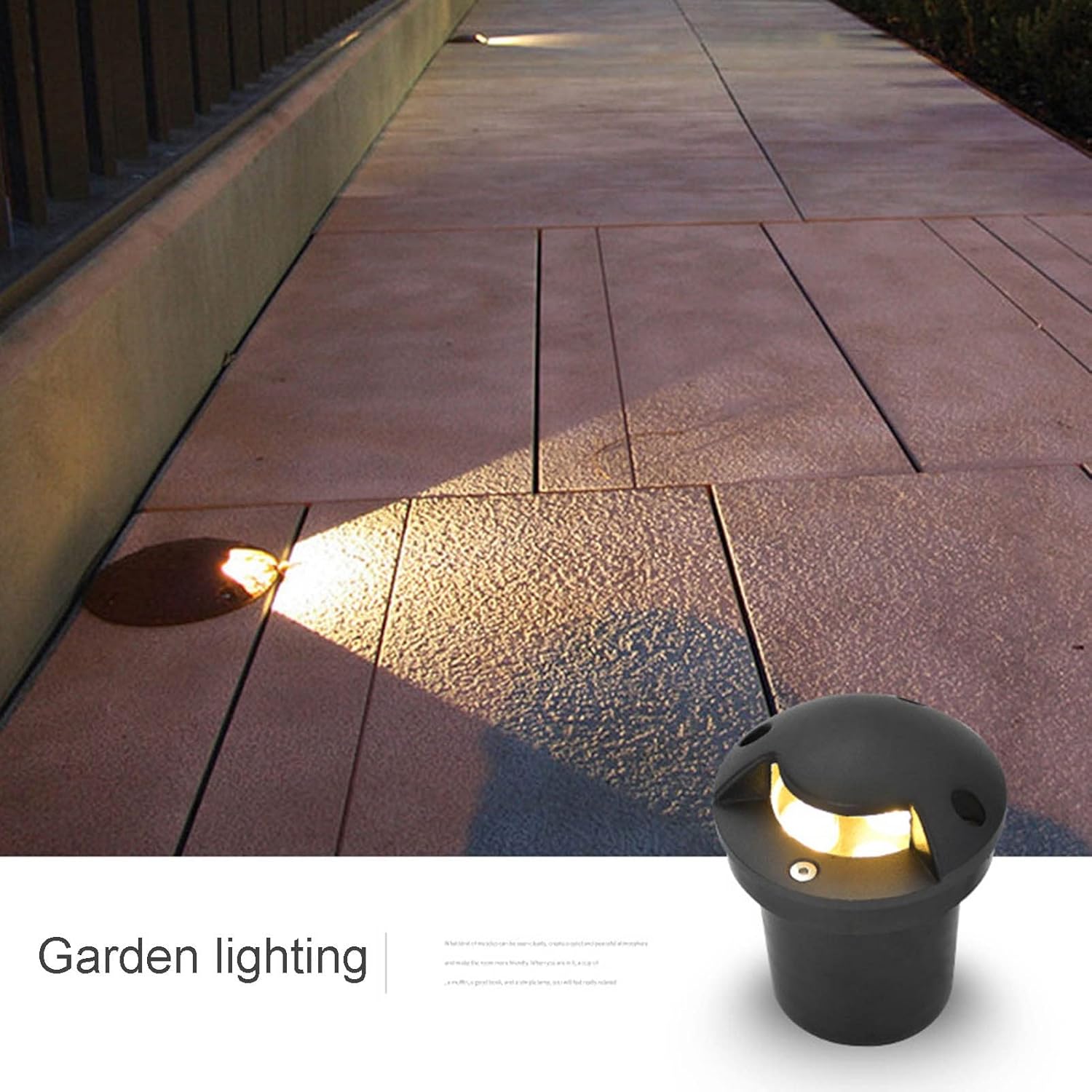 Product name: Garden Buried Light/ Built-In Wall Lamp/ Pathway LightsSpecifications:Luminous side: 1 SideEmitting color: White light , Warm white light , Green light , Blue light , Red light , Yellow lightMaterial: Die-cast aluminum + tempered glassPower: 3W, 6W, 12W, 18WVoltage: AC85-265V(If you need AC12/24V, DC12/24V, please contact us)Reserved line: 20CMProtection level: IP65 (outdoor rainwater resistance)Features: shock proof and helps offer excellent lighting effectWarranty: 3 yearsProduct Details:1. Low voltage landscape lights, Strong pressure resistance, use thick die-casting aluminum and glass lens, high transmit lighttance, uniform light color, high hardness, not easy to be broken2. Waterproof grade IP65, waterproof, dustproof, rainproof, strengthen the waterproof performance of lamps.3. Air convection heat dissipation, Thickened die-cast aluminum material, direct air convection heat dissipation, solve the problem of heat dissipation of lamps4. High lumen, Built-in LED light source, good light transmission effect, long service life, high color rendering5. landscape lighting Perfect for decorating your gardens, stairs, terraces, carports, paths, swimming pools, etc.Packing package:1X driveway lights