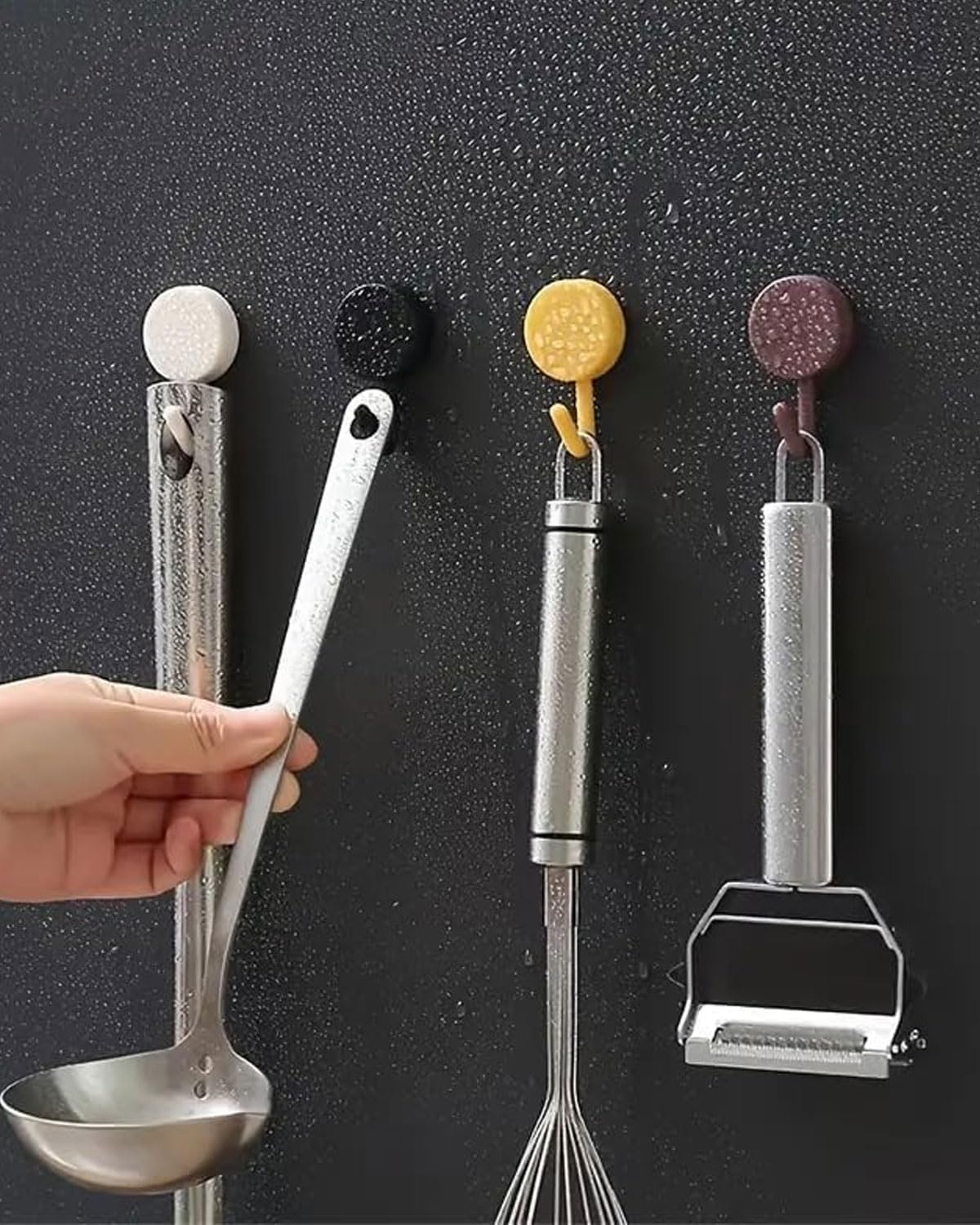 HIGH QUALITY: High quality adhesive hook, waterproof and strong viscosity. Sturdy and reliable plastic material that is not easy to wear out for daily use. Suspend without drilling - The self-adhesive wall hooks, without drilling or nails, can be easily glued to any smooth and smooth surface. Applicable to materials such as tiles, marble, wood, metal, glass or ceramic, without damaging the surface. A SIMPLE AND ELEGANT DESIGN - This adhesive hook features a simple, sleek and modern design, with a soft pink shade that fits perfectly with any interior decor. Leave no traces after removal to keep the wall beautiful. EASY TO USE These bathroom towel hooks are simple to install. Simply tear off the protective film and stick it to the desired surface. Place the hook on a smooth, clean and dry surface, press firmly for 3 minutes and wait 24 hours after use. WIDE USAGE - Whether in the bathroom, kitchen or any other room in your home, these self adhesive wall mounted hooks are ideal for suspending towels, tea towels, photos and other items without the need for drilling.