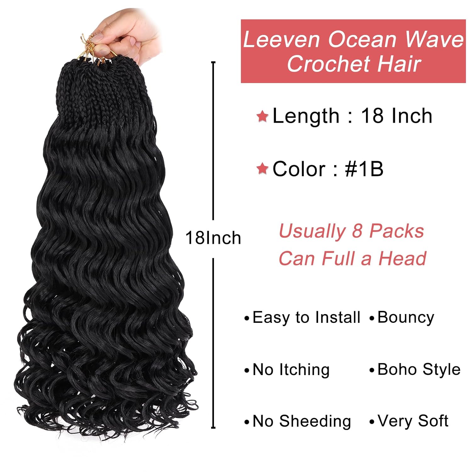 | Hair Type | Boho Ocean Wave Crochet Braids, Curly, Pre Looped Ocean Wave Crochet Hair, Wavy |