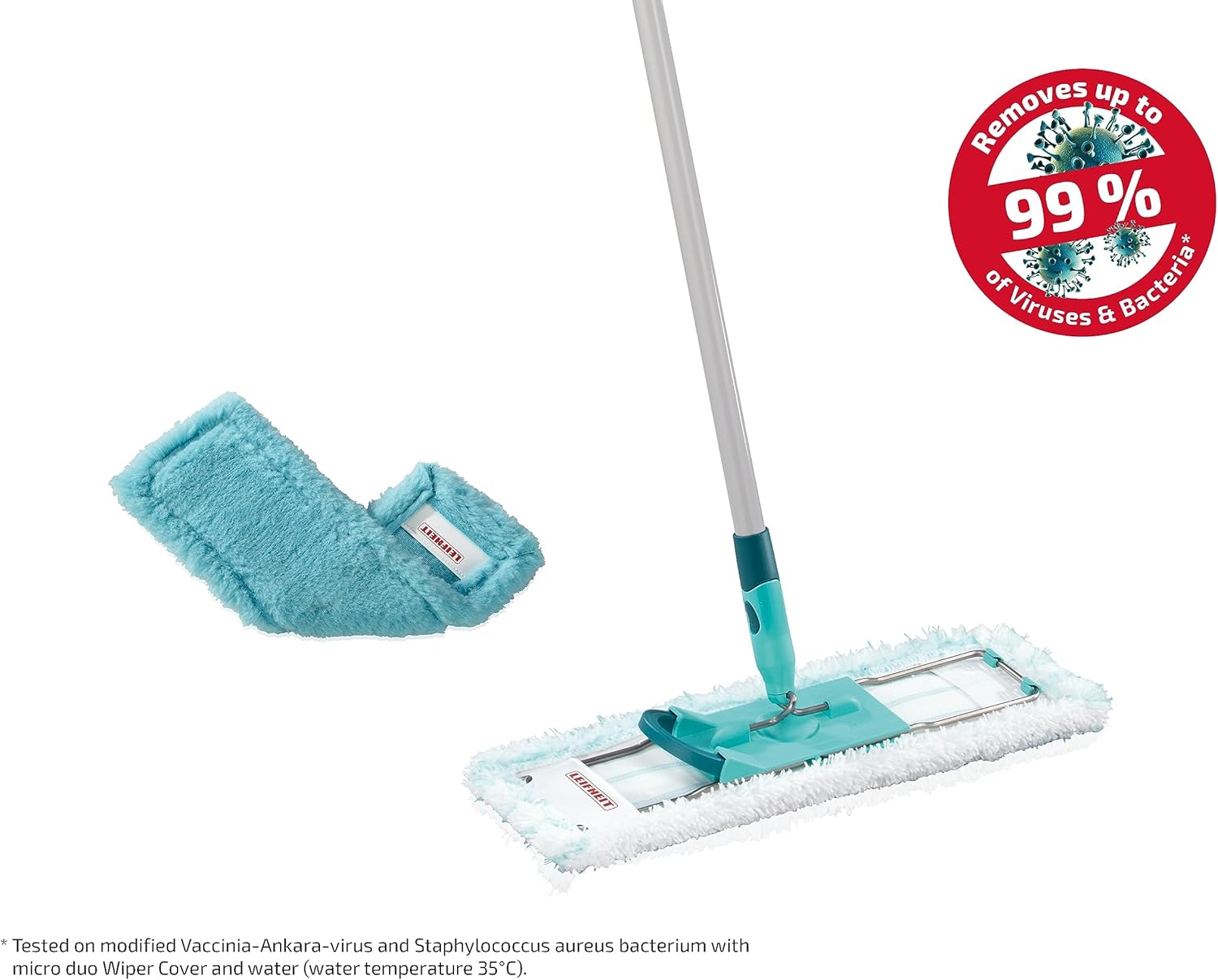 Leifheit Profi XL micro duo and static plus floor washer with robust steel handle 140 cm - wash all types of floors quickly and effortlessly! Remove dirt and embedded traces in record time and effortlessly with the Leifheit Profi XL floor washer, micro duo cover and 140 cm steel handle. Equipped with a duo microfibre cover with rows of very fine and slightly raised bristles, the cleaning mop can thoroughly wash all types of floors, including tiled, natural stone and laminate floors. The 42 cm XL cleaning width and the 146 cm long handle of the 360° rotating mop offer great flexibility and accessibility: the swivel joint allows for bypassing obstacles such as chair or table legs, while the handle with the folding flat joint makes it easy to access the undersides. For even more versatile, this floor washer also comes with a static plus cover. This cover is ideal for dry cleaning. It can hold dust, dirt and hair like a magnet thanks to its statically charged fibers. The Click-System handle can be combined with other Leifheit Click-System accessories. After use, the cover can be removed by simply pressing the foot. The Profi cover spinner is available separately for wet cleaning. The advantages of the product in detail: Floor washer comes with 2 covers Deep wet cleaning of all types of floors provided by the micro duo double fibre cover. Dry cleaning of all types of floors provided by the static plus cover. 140 cm steel handle and 42 cm cleaning surface. Click-System handle compatible with other Click-System accessories from Leifheit flexible broom to 36 cm. 0° and handle Folds flat for hard-to-reach places