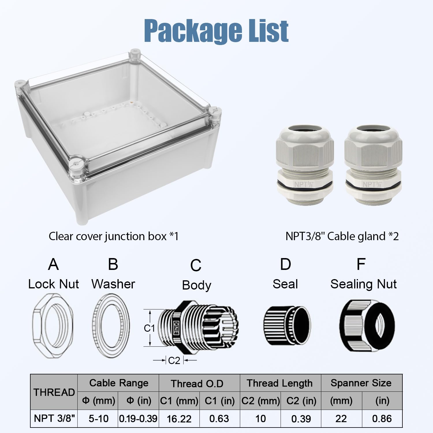 | Included Components | junction box and accessories |