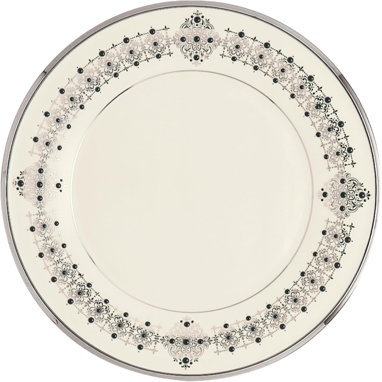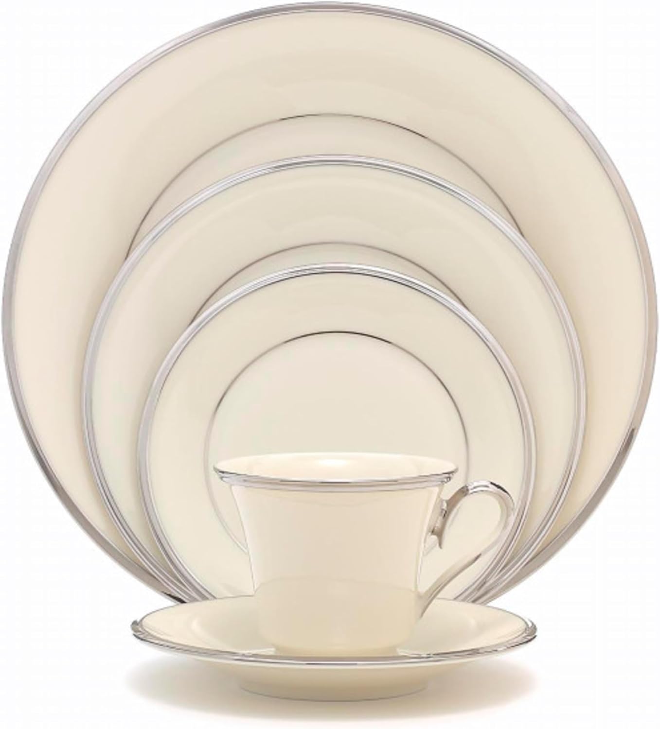The Solitaire Dinner Plate features thick, shimmering platinum trim on durable ivory bone china. This sophisticated dinnerware set bears a rich yet simple design perfect for combining with similar sets. This item is dishwasher-safe, for added convenience.