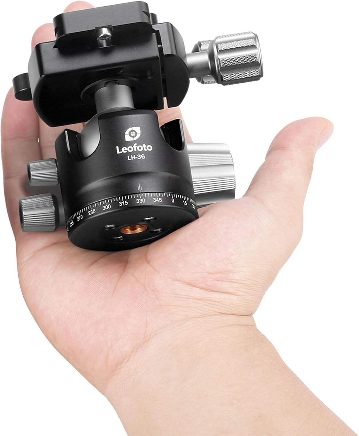 Strong & Stable: Featuring a lower center of gravity, this camera head is more stable and heavy duty. The aircraft-grade aluminium and CNC machined parts offer solid and strong structure, guarantees durability and high performance under different circumstances shooting, indoor or outdoor 360° Swivel & 90° Tilt: Swivel the 36mm ball head at 360° or tilt it at 90° in the dual drop notches for flexible camera positioning. The panning base with a 360° scale enables precise and fluid panorama photography and videographyCompact & Portable: The height of this ball head is 84mm/3.31", the diameter of the base is 52mm/2.05", the self-weight is 410g/0.9lb, easy to carry. It can hold up to 18kg/39.7lb of camera equipmentEasy Operation with Lock Knobs: Four locking knobs ensure easy setup and reliable security. Release the knobs to freely adjust the angle of the ball head, smoothly rotate the camera for panoramic shots and release the quick release plate. Tighten the knobs to hold everything securely in placeWide Compatible: The 1/4" mounting stud is compatible with a broad range of DSLR cameras, mirrorless cameras, camcorders, projectors, phone holders and so on. There is a 3/8" screw of the ball head in the bottom, compatible with tripods, monopods, tabletop tripods, light brackets, camera slider and so on