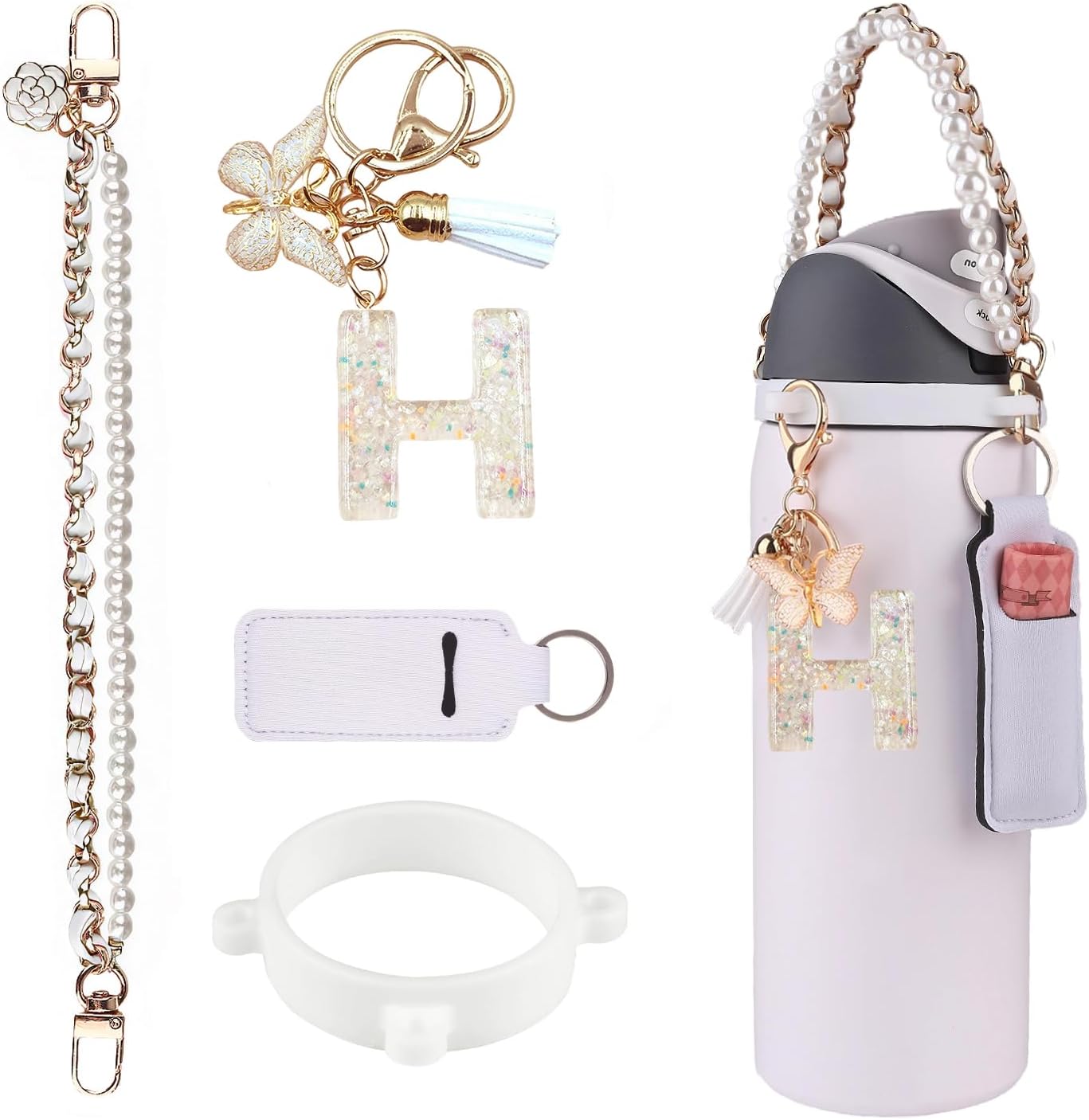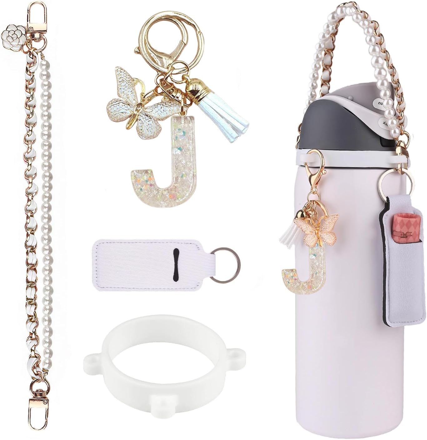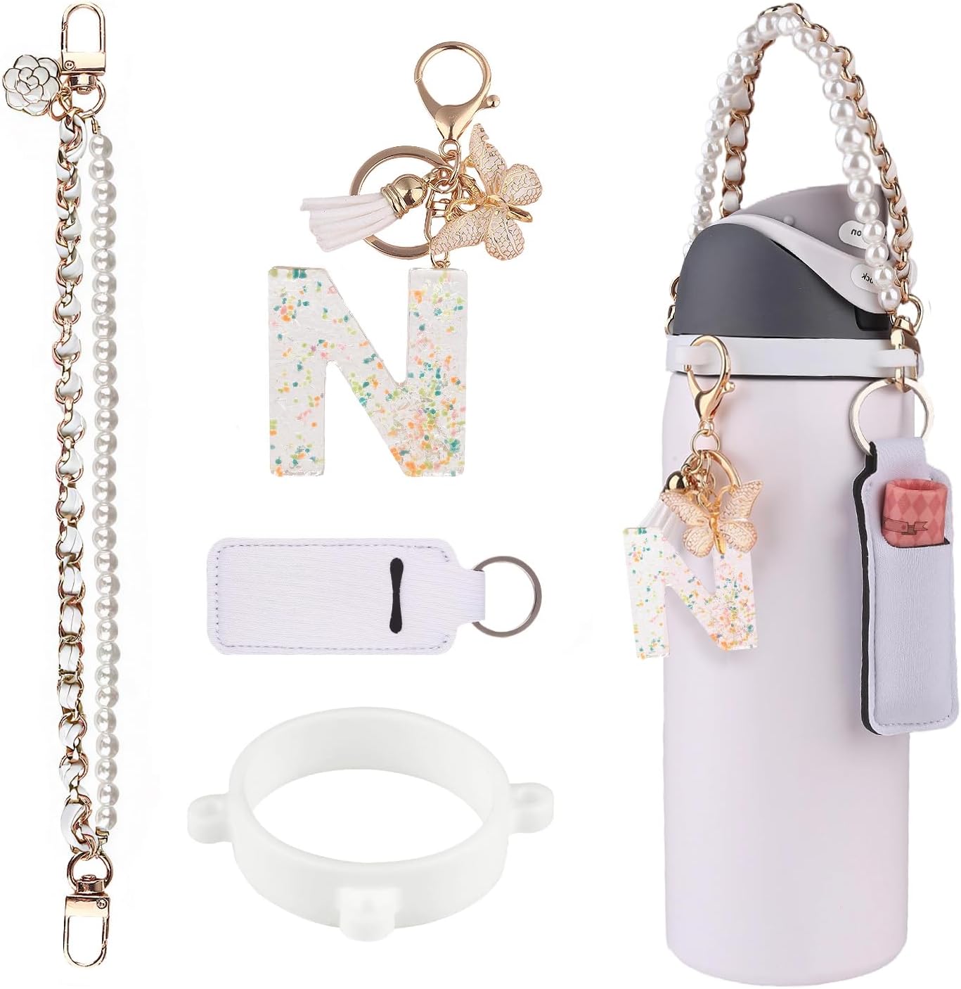 RONGFY Letter Accessories for Owala Water Bottle 24/32/40oz,Initial Charm、Lipstick Holder and Handle Strap for Owala and Stanley Cup Accessories
