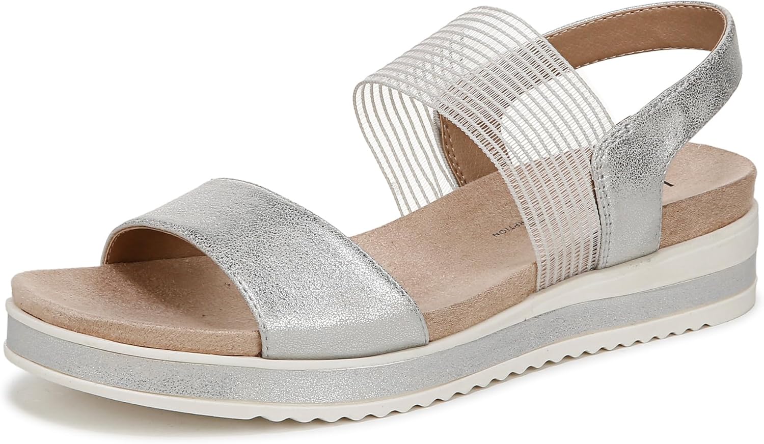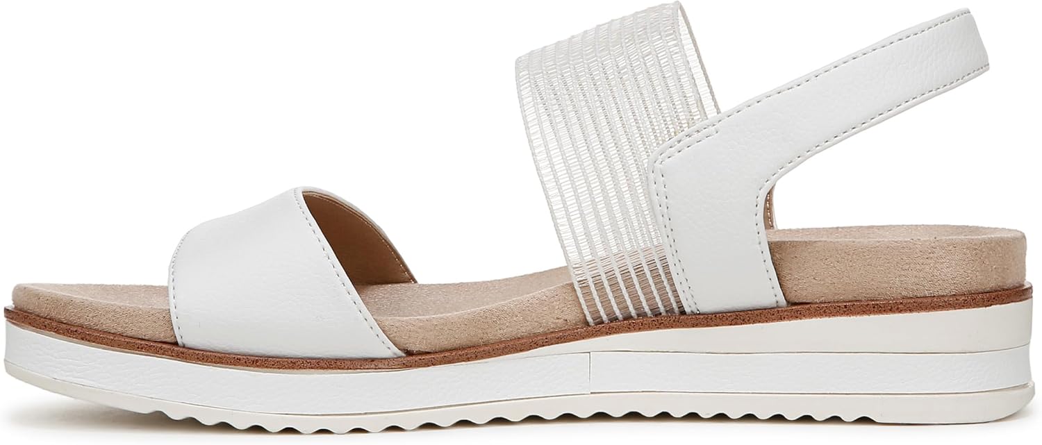 The epitome of sport-luxe. These women’s sandals have next-level comfort and next-level style. Sandals for women design with faux leather and an open toe, slip-on fit, translucent stretch gore strap, and sporty sole with color pop detail. Trusted Soft System® comfort technology for unmatched cushion, support, and flexibility in every pair. Shock absorption with pressure distribution and superior cushioning for an effortless feel. Traction sole for extra stability. Just Right Height 1 1/4 inch wedge heel.