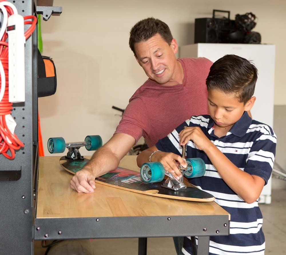 The Wall-Mounted Work Table from Lifetime Products is the perfect work and storage solution for your garage or shop area. This unique folding table is constructed of water-resistant wood with a heavy-duty metal frame. The sturdy steel frame has a powder-coated finish that protects against weather, rust, and corrosion and the wood table surface is made of water-resistant durable wood. Included in the design are interior and exterior pegboards to add hooks for tool storage, and the exterior loop will fit any standard padlock, keeping your tools safe and secure. Included are 30 organization hooks to keep your equipment and space in order. The table also has a convenient fold-up design to make storage simple. Features a wall-mounted powder-coated work station with fold-in varnished wood work surface. Includes interior and exterior steel pegboard, storage hooks, and the table top can be adjusted to mount at a fixed height between 34 in. - 42.3 in. (85,5 - 107,4 cm). Comes with a 5-year limited warranty.