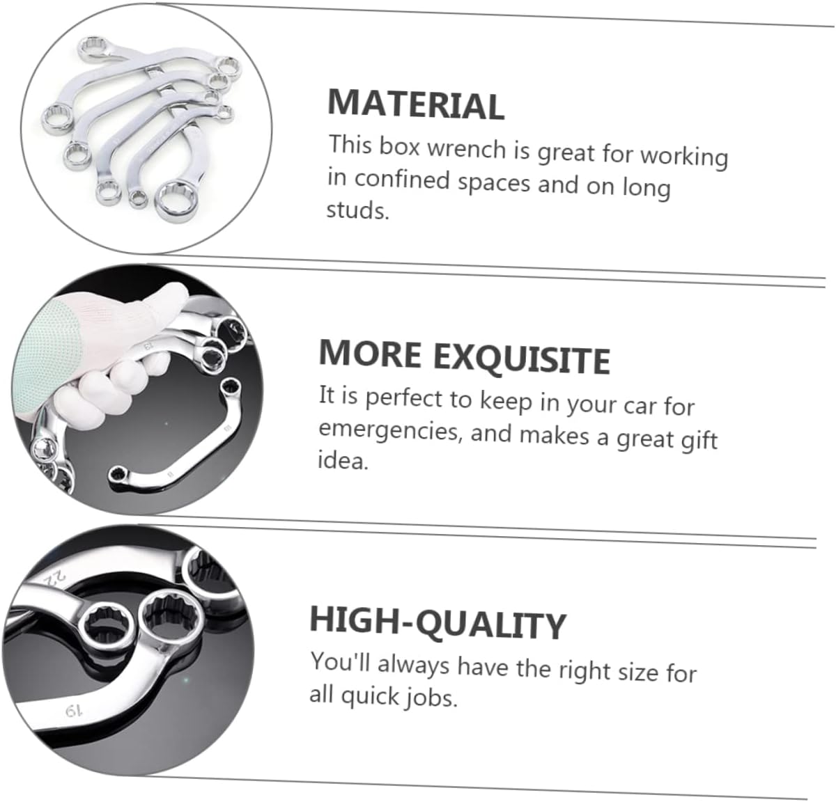 Package Include 5 x wrenches Characteristics - Material: Chrome-vanadium steel Socket Spanner. - Color: Silver Socket Wrench. - Size: 31.00X30.00X2.20cm/12.18X11.79X0.86 inch Multi-functional Wrench. - Smooth profile handles allows you to comfortably apply more torque to the fastener Box Wrench. - Fine workmanship and creative appearance ensure its popularity and practicality Metal Socket Spanner. - Suitable for equipment installation, bicycles, electric vehicle, automobile maintenance, etc Steel Box Spanner. - Super handy especially in tight spots. Box wrenches make quick work of the jobs at hand Metal Box Spanner. - Full- end helps to deliver reliable torque to or loosen any bolt without rounding Metal Multi-functional Wrench.Goods DescriptionMetal Socket wrenches make quick work of the jobs at hand.Socket Spanner Each tool is tested against industry standards for hardness, torque, finish and usability and should last a under normal use.Multi-functional Wrench Super handy especially in tight spots.Metal Socket Wrench Tools are heat treated for strength and durability
