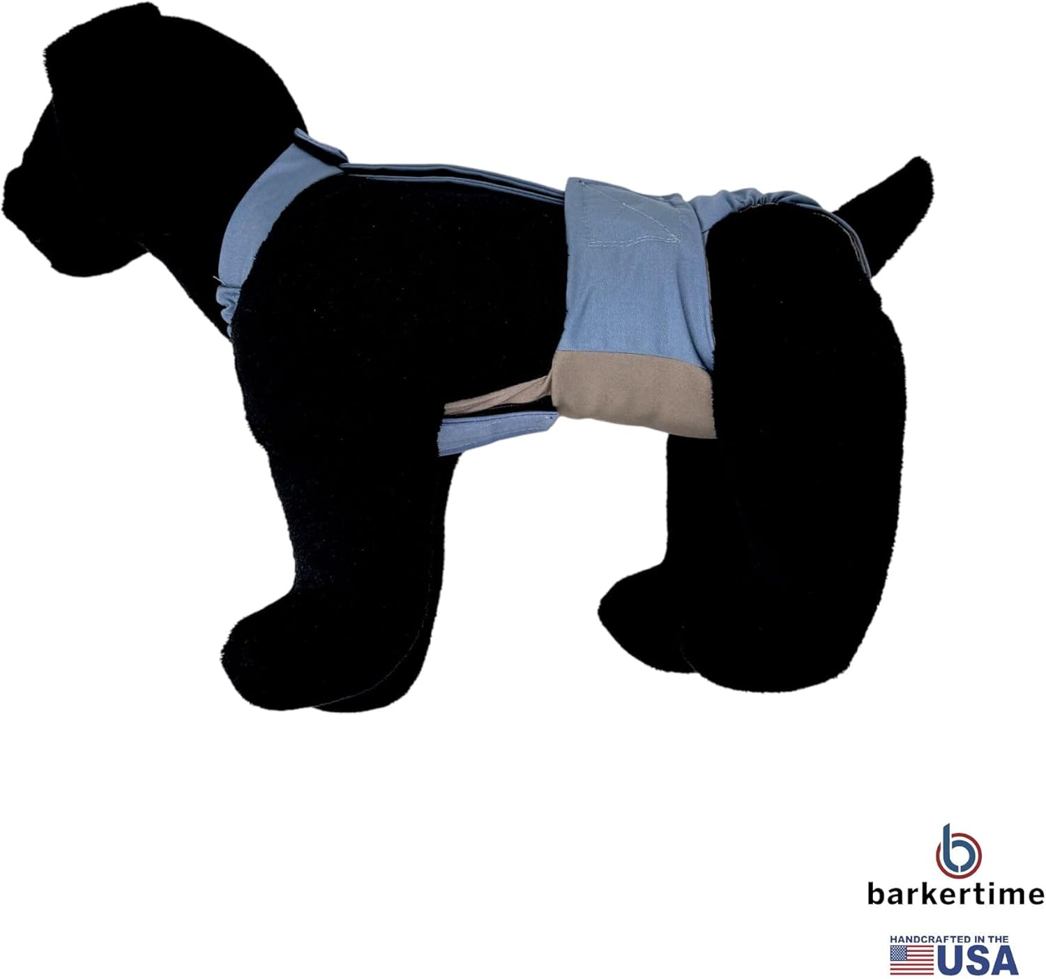 Handcrafted to perfection so your furbaby can stay clean and comfortable while you have complete peace of mind. Suitable for both male and female dogs with incontinence, marking habits, excitable urination or heat cycles. Specifically designed for the \\\\\\\\\\\\\\\"Houdini\\\\\\\\\\\\\\\" escape-artist dogs that have difficulty keeping diapers on. Snap closure around the tail area allows for maximum adjustability to your dog\\\\\\\\\\\\\\\'s anatomy. Perfect alternative to the traditional belly band for male dogs.Size ChartPlease go up one size if your dog is between sizes Size XS: Waist 9 - 2 inches, Neck 5 - 8 inches, Neck to Waist 5 - 7 inches, Neck to Tail 10 - 12 inches Size S: Waist 12 - 15 inches, Neck 8 - 11 inches, Neck to Waist 7 - 10 inches, Neck to Tail 10 - 13 inches Size M: 15 - 18 inches, Neck 12 - 15 inches, Neck to Waist 10 - 13 inches, Neck to Tail 13 - 17 inches Size L: 18 - 22 inches, Neck 16 - 19 inches, Neck to Waist 12 - 17 inches, Neck to Tail 13 - 22 inches Size XL: 22 - 30 inches, Neck 20 - 23 inches, Neck to Waist 14 - 20 inches, Neck to Tail 20 - 26 inches Size XXL: 30 - 43 inches, Neck 23 - 26 inches, Neck to Waist 17 - 25 inches, Neck to Tail 27 - 36 inches Check out Barkertime on Amazon for more options for pet diapers, incontinence products, pet fashion items and other accessories made in USA.