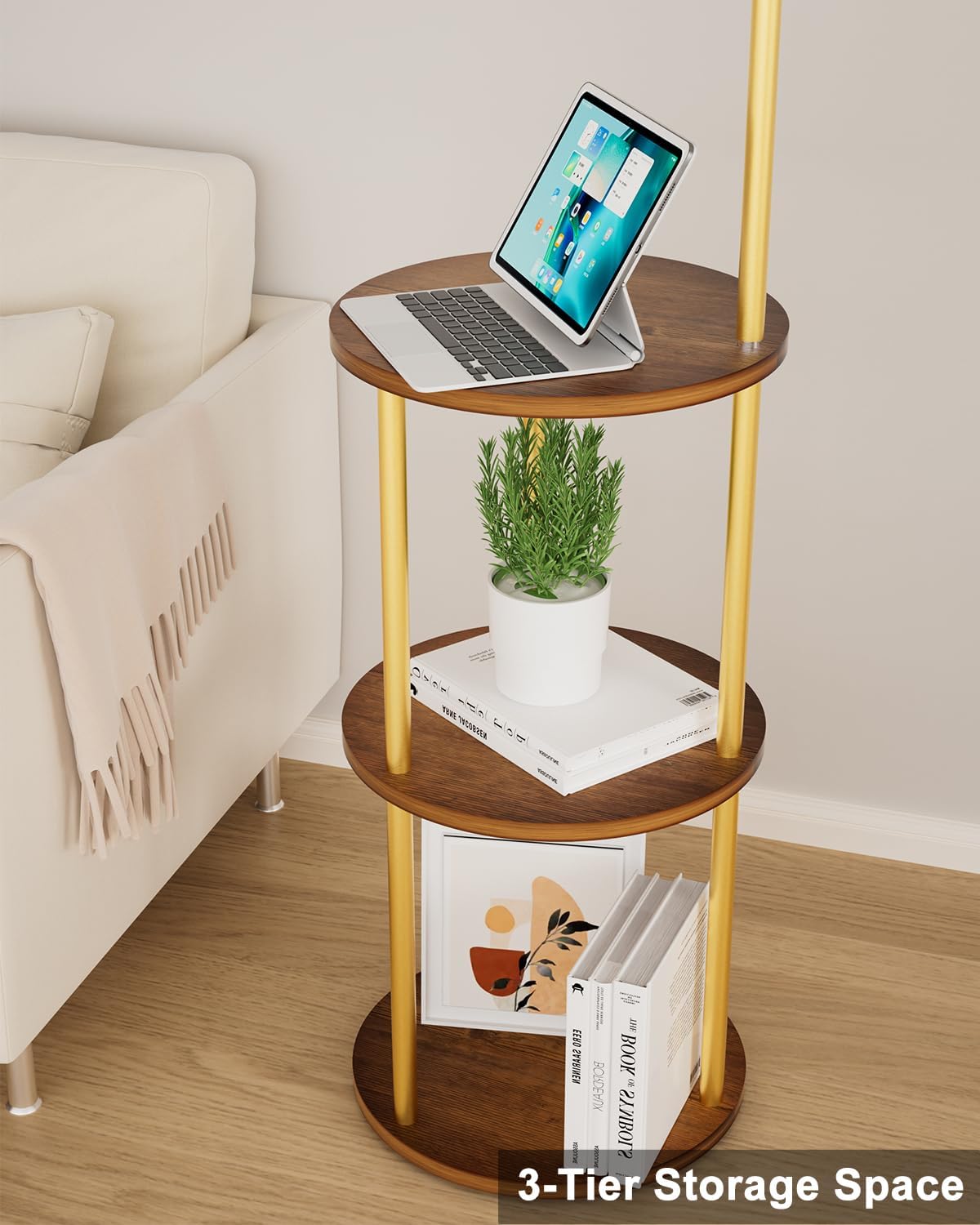 The contemporary tall lamp with shelves matches Asian, mid century modern, rustic and farmhouse decorative styles, perfect for general indoor areas which including living room, bedrooms, office, cafe, library and reading room.