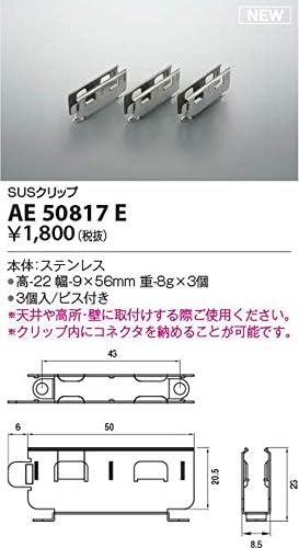 Body: Stainless steel Height: 0.9 inches (22 mm) Width: 0.4 x 2.2 inches (9 x 56 mm) Weight: 0.2 lbs (0.1 kg) Includes 3 pieces/screws Please use when mounting to ceilings, high places, and walls. You can place the connector inside the clip.