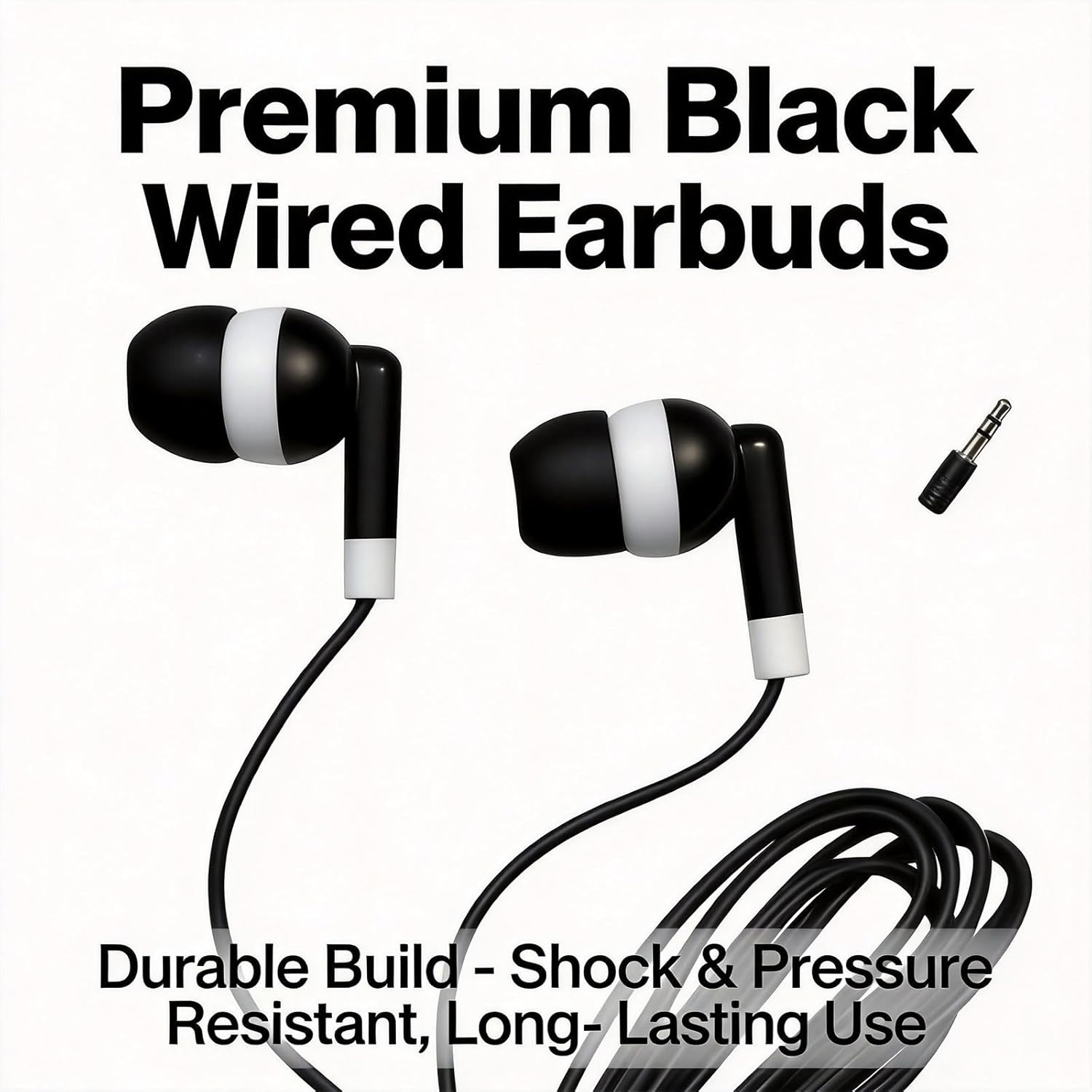 Classic solid black wired in-ear headphones with a sleek, lightweight design. Featuring a universal 3.5mm jack, they offer true plug-and-play functionality with no complicated setup required. Delivering clean, clear sound, these earbuds excel in all daily scenarios, from music and videos to calls. The dirt-resistant black finish is easy to clean and maintain, making them a practical and essential choice for daily commutes, office work, and study sessions.