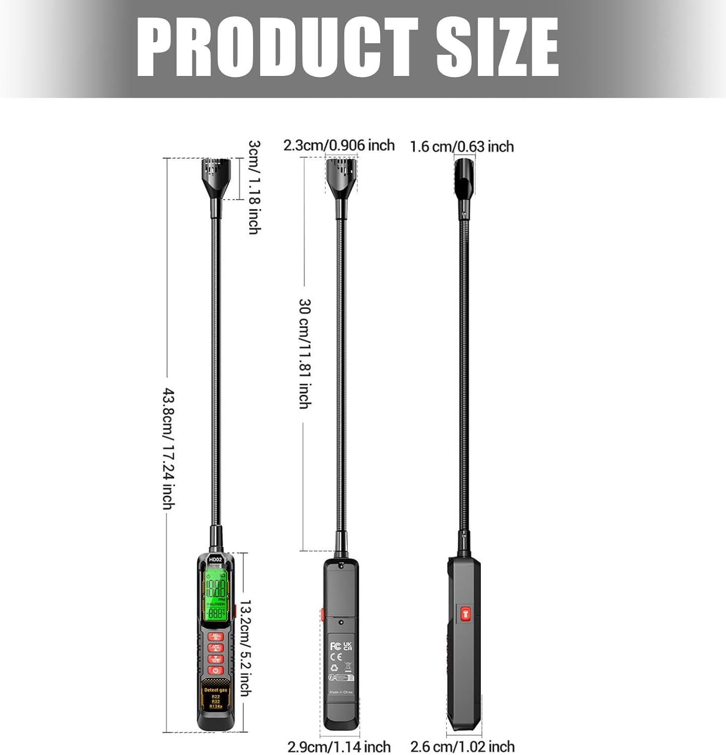 Lightweight High Precise Refrigeration Leak Detector with Rechargeable Battery Realtime Alarm for HVAC Automotive SystemsFeatures:Professional refrigerant leak detector employs advanced sensors technology to accurately locate leaks in HVAC systems, automotive cooling units, and refrigeration equipment.Features a rechargeable battery for continuous operations, LED alerts, and ABS metal housing built to withstand demanding workshop environments.Ideal for HVAC technicians, automotive mechanics, and appliance maintenance specialists needing reliabled leak detection tools for daily diagnostics.Effectively identifies leaks in residential air conditioners, commercial refrigerator units, automotive hvac systems, and industrial cooling pipelines.Compact design combines laboratory grade analysis precise with fields ready portability, ensuring year round reliability across multiple repair scenarios.Specifications:Component: ABS+metalLength:Approx.43.8cm/17.24inchUsage scenarios: Suitable for air conditioning repair, car repair and most scenarios that require refrigeration systems maintenancePackage Includes:1pcs Refrigerant Leak Detector1pcs Screwdriver 1pcs Charging Cable 1pcs InstructionNote:1.Please allow 1-2cm errors due to manual measurement, make sure that you donot mind befores you order. 2.Due to the differences between different monitors, the picture may not reflect the actual color.Thanks for your understandings.
