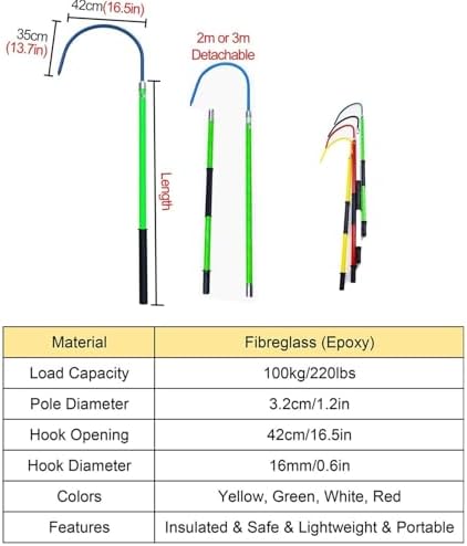 The Insulation Rescue Hook is a vital tool for anyone involved in emergency rescue operations, especially in situations where electric shock is a concern. Designed with safety in mind, this insulated rescue hook features a glass fiber handle that minimizes the risk of electrocution, ensuring that rescuers can act swiftly and effectively. Its lightweight and compact design allows for easy transport and storage, making it an indispensable tool to have on hand in any emergency kit. With a robust load capacity of up to 100kg (220 pounds), this rescue hook provides the strength and reliability needed in high-stakes situations. The ergonomic slide handle enhances comfort and control, allowing users to operate the tool safely near high-voltage equipment. Whether you are working in new energy vehicle repairs, power installations, or need it for home applications, this hook is engineered for versatility and effectiveness. Using the Insulation Rescue Hook is straightforward; simply grasp the body around the waist or armpit area of the person in distress. This intuitive design enables quick and efficient rescue operations, making it suitable for both professionals and everyday users. Specifications: - Material: Glass fiber - Load Capacity: 100kg (220.5 pounds) - Available Colors: Green, Red, Yellow - Hook Head Diameter: 13mm - Hook Head Opening: 42cm - Wall Thickness: 2mm - Ring Diameter: 32mm - Length Options and Voltage Ratings: - 1m (3.3FT) - Fixed voltage up to 10kV - 1.5m (4.9FT) - Voltage capacity of 35kV - 2m (6.5FT) - Voltage capacity of 110kV (2 parts) - 3m (9.8FT) - Voltage capacity of 220kV (2 parts) Packing List: Insulation Rescue Hook x 1 Please note: Due to shipping restrictions, hooks longer than 1.5m will arrive in sections and will need a connector for assembly. This ensures convenience without compromising safety. Equip yourself with the Insulation Rescue Hook and be prepared for any emergency situation.