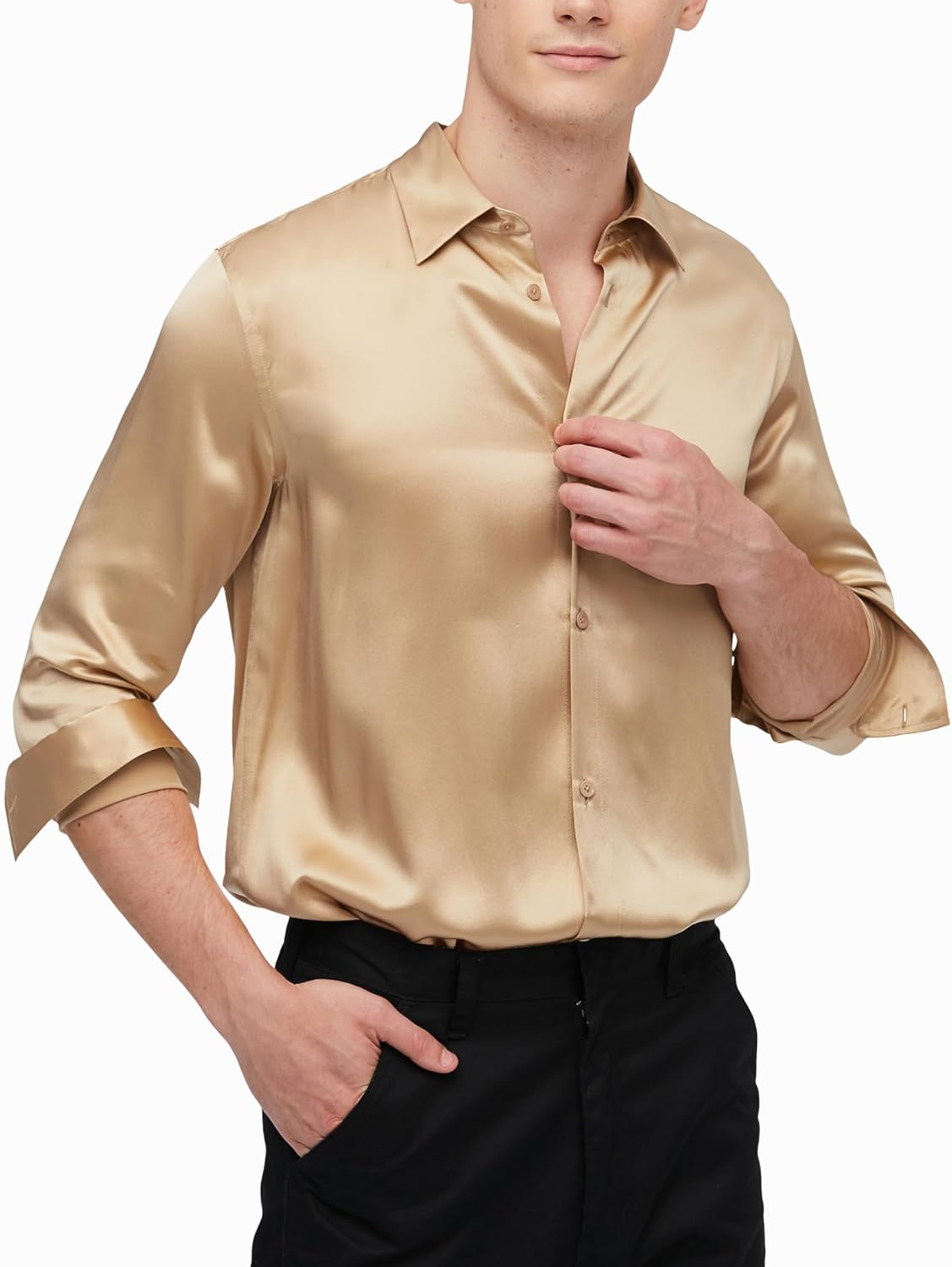 Enjoy a relaxed mindset with this classic long-sleeve shirt. Made with 100% high grade Mullberry silk, this simple shirt followed one of the most classic design, comes in a regular fit, and features a classic button-down closure, mother-of-pearl buttons. Suits perfectly for a daily wearing and express your professional but also easy going attitude.