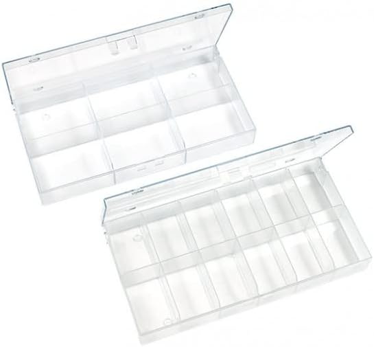 Stapelbare Sammel-, Präsentations- und Sortierboxen aus Kunststoff mit aufklappbarer Abdeckung zum geschützten Sammeln und Präsentieren von beispielsweise Ü-Ei-Figuren, Fossilien etc. mit 12 festen Fächern. 10er Packung! Außenmaße: Länge: 195 mm Breite: 100 mm Höhe: 30 mm Fächermaße: Länge: 31 mm, Breite: 48 mm. Innenhöhe: ca. 28 mm., Material: Kunststoff , Verpackungsinhalt: 10 Stück