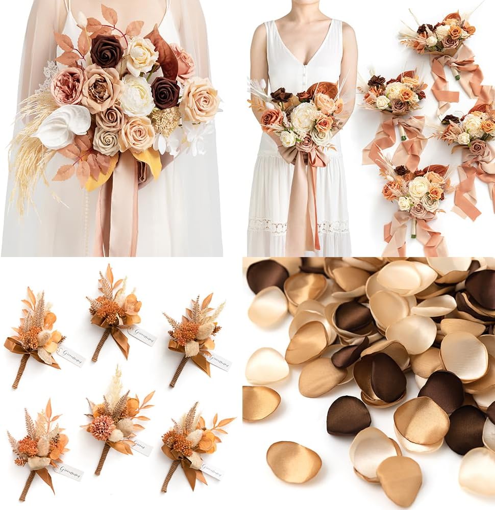 | Included Components | Bridal Bouquet, Bridesmaid Bouquets, Boutonniere for Men, Rose Petals |