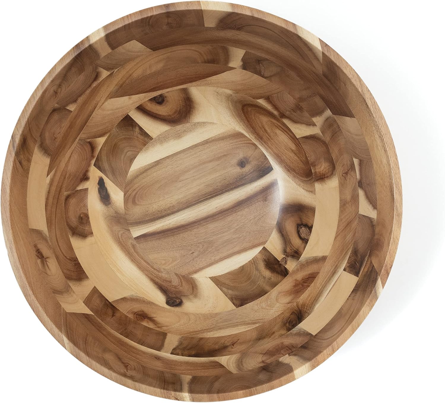 Lipper International provides exceptionally valued items for the kitchen, home, office, and child's playroom. Known for their functionality and beauty, each of our products is individually crafted from the finest quality materials. These unique bowls are made from durable and acacia wood that is perfect for any decor. Use them to hold fruit, serve salads, or just to decorate around your home. Hand wash with a mild soap and cool water. Do not soak. Do not put in the dishwasher, microwave or refrigerator. Extreme changes in temperature will cause the material to crack over time. Dry thoroughly. Occasional use of mineral oil on the inside will help maintain its appearance.