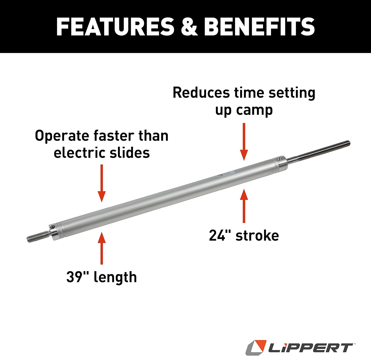 When it comes to replacement parts for your RV, finding the right match for your rig is easy with Lippert. Our genuine replacement parts help you take the guesswork out of getting your RV up and running like usual. For 5th wheel RVs, travel trailer and motorhomes operating with a Lippert Slide-Out System, our Hydraulic Cylinders are exact matches for your slide-out equipment. These cylinders help your slide-out room move efficiently, smoothly and faster than electric slides. Great for RVs with more than one slide room, hydraulics help eliminate the need for multiple power sources, switches and reduce wiring needs. Plus, in the event of a power outage, you can manually override all of your slides from a single source. This hydraulic cylinder comes complete with a 24” stroke, 39” length. Before installation, it’s recommended that you reference your owner’s manual for correct sizing and hydraulic fluid needs. Whether you’re on the road or on the water, Lippert supplies a broad array of premium RV, towing, and marine products designed to enhance all of your recreational pursuits. Our team is committed to always thinking about your next journey — pushing the possibilities of our products and services, all to better your time spent outdoors, whenever, wherever, for years to come.