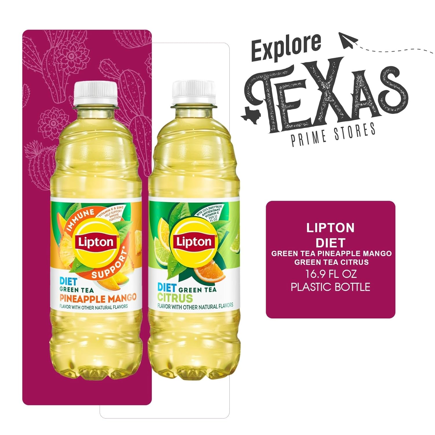 | Product Benefits | Natural green tea with antioxidant properties, available in refreshing Diet Citrus and Diet Pineapple-Mango flavors |