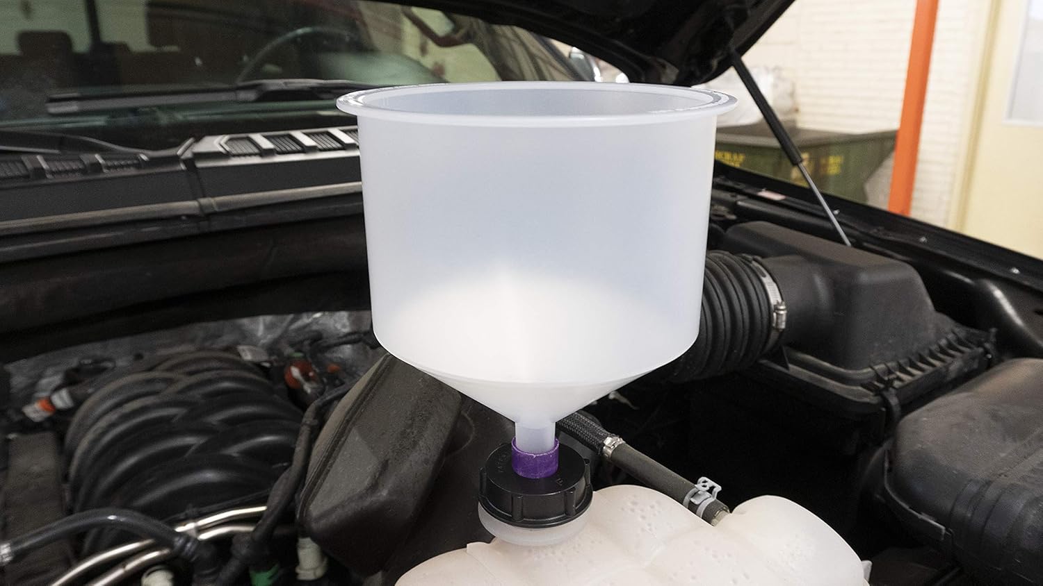 Includes new cap for Ford, Audi, and Porsche overflow tanks with threaded caps. Also updated to include colored adapters for quick identification. The new clear funnel allows a quick visual check of the coolant from across the shop. Comes with a lid to keep contaminants out as well as store the caps and adapters. The Spill-Free Funnel eliminates trapped air pockets which usually cause erratic cooling system and heater performance. It controls the proper amount of coolant entering system and enables unattended filling of the cooling system. The funnel eliminates squeaky belts caused by coolant overflow and protect the environment. Five adapters fit most domestic and import cars, light trucks and Ford vehicles. Straight extension and 45 degree elbows allow use on radiator caps that are placed at an angle or other hard-to-reach applications.