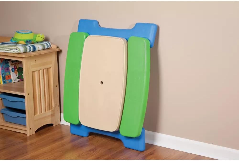 629945M Features: -No tools are required for setup or takedown. -Accessories not included. -Stylish umbrella provides UV protection. -Seats up to 4 kids, 2 per bench. -Age 2-5 years. -Made in the USA. Table Top Finish: -Beige. Table Base Finish: -Blue. Table Top Material: -Plastic. Table Base Material: -Plastic. Number of Items Included: -2. Pieces Included: -Table, umbrella. Country of Manufacture: -United States. Dimensions: Table Height - Top to Bottom: -18.25". Table Width - Side to Side: -27". Table Depth - Front to Back: -25.3". Overall Product Weight: -15 lbs.