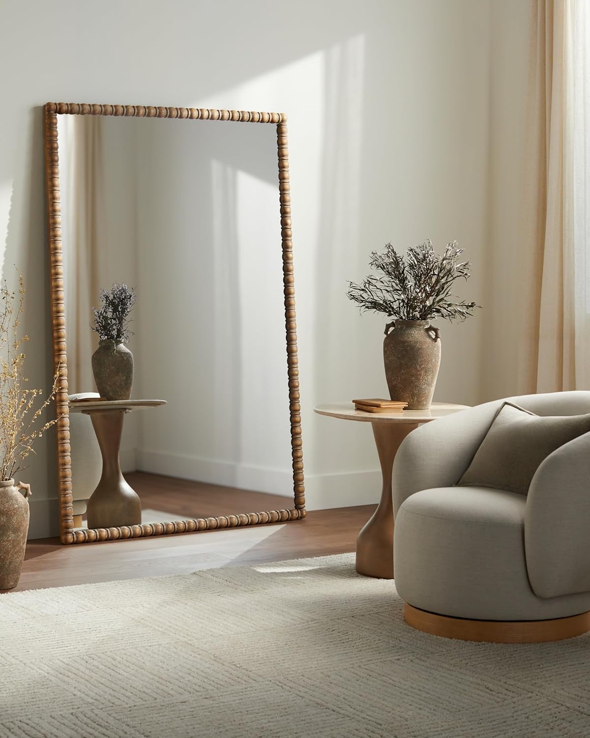 Full Length MirrorFrame: Pine, Substrate: Manufactured WoodColors: Frame: BlackOverall Dimensions: 72"H x 47"W x 3"DDesigned by Galey Alix for Livabliss, the Karling Blair mirrors have a beaded pine wood frame available in two finishes. The elegant detailing on these mirrors adds an unexpected pop of texture and interest to any space. Available in three sizes.