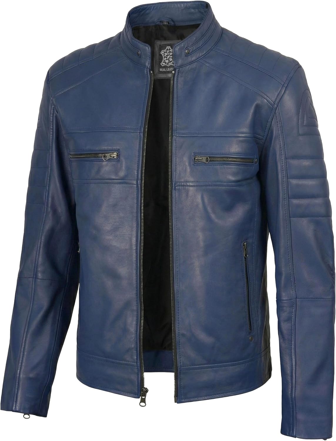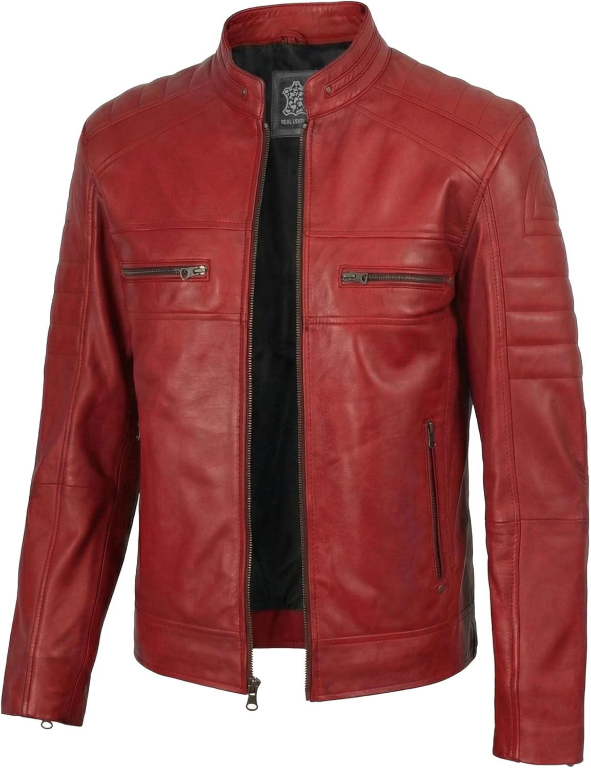 Upgrade Your Wardrobe with This Stylish Mens Cafe Racer Leather Jacket - Quilted Style Real Lambskin Leather Motorcycle Jackets for Men Crafted from Real Lambskin Leather with an Ultra-Soft, Smooth Finish for Lasting Comfort, Flexibility, and Long-Term Wear. Real Leather Motorcycle Jacket Men Designed for Both Function and Fashion, It Features a Smooth Front Zipper Closure, Stand Collar with Snap-Button Detail, and Zipper Cuffs That Deliver a Sharp, Road-Ready Biker Look with Modern Streetwear Appeal. Lambskin Leather Jacket Motorcycle Has Soft Polyester Lining Enhances Breathability While Adding a Comfortable Layer of Warmth, Making It Ideal for Year-Round Wear. for Everyday Convenience, This Genuine Leather Jacket Men Includes 2 Chest Pockets, 2 Side Pockets, and 2 Inner Pockets to Securely Store Your Phone, Wallet, Keys, and Other Essentials. Real Lambskin Leather Jacket Men Please Refer to the Size Chart in the Images to Find Your Ideal Fit and Enjoy All-Day Comfort in This Versatile Leather Jackets for Men.