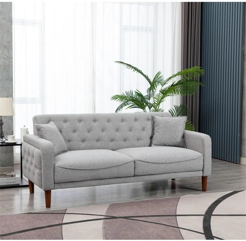 The 3P seat , backrest and armrest with attractive tufted buttons and high density foam padding are of very comfortable. The padded seat is filled with high-density foam for long-lasting comfort. for excellent comfort and support that will stand up to extended use.Whether you're reading a book, taking a nap or spending time with your family, this recliner will keep you comfortable and comfortable.This sofamakes living in a small space a more spontaneous home environment. Suitable for any apartment or studio, it enhances living and working comfort.Sofa composition: 3P sofa, 4 tapered legs,Sofa frame: solid and artificial wood, rubber wood legs, fabric linenProduct size: 77.95"*32.28"*32.68"Net Weight: 103.62 (lbs) Gross Weight: 112.44 (lbs)Weight: 600 lbsSet Includes1*Sofa,(no other presentation items included).Notice:1. Due to manual measurement, please allow 2-3% error, before you bid, please make sure you don't mind.2. The color may vary due to different displays, please refer to the actual product.2. Due to the manual measurement, please allow a 1-3 cm difference......