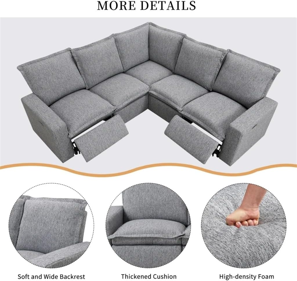 The recliner features a smooth power reclining mechanism, so you can easily adjust your position to find the angle for maximum relaxation. The power feature enables adjustability to your personal preference. We love that it power-reclines with the push of a button to get to just the right angle.Stay connected and charged with port conveniently located on the sofa chair, allowing you to charge your devices and keep them within reach.The seat and backrest are spacious enough to accommodate peoples of , while the thickened padding ensures that you'll feel like you're sinking into a cloud. The cushions are filled with foam and supported by sinuous springs to help limit sagging over time. Skin-friendly linen fabric is comfortable and breathable, for families with kids and pets.ensuring you'll be able to enjoy it for years to come. the sturdy plywood frame with a heavy duty iron mechanism is designed to support up to 330 lbs, while wrapping you in comfort with premium cushion support and overstuffed armrests.Home Theater Seating combines unparalleled comfort, sophisticated design and the features you could dream of. A stylish, comfortable spot featuring a timeless design that easily blends with any decor; for your living room, bedroom, and theater room.Upholstery Material LinenFrame Material Iron+PlywoodSeat Construction FoamLeg Material PlasticsPackage Includes:1 x Sofa(no other presentation items included).Notice:1. Due to manual measurement, please allow 2-3% error, before you bid, please make sure you don't mind.2. The color may vary due to different displays, please refer to the actual product.