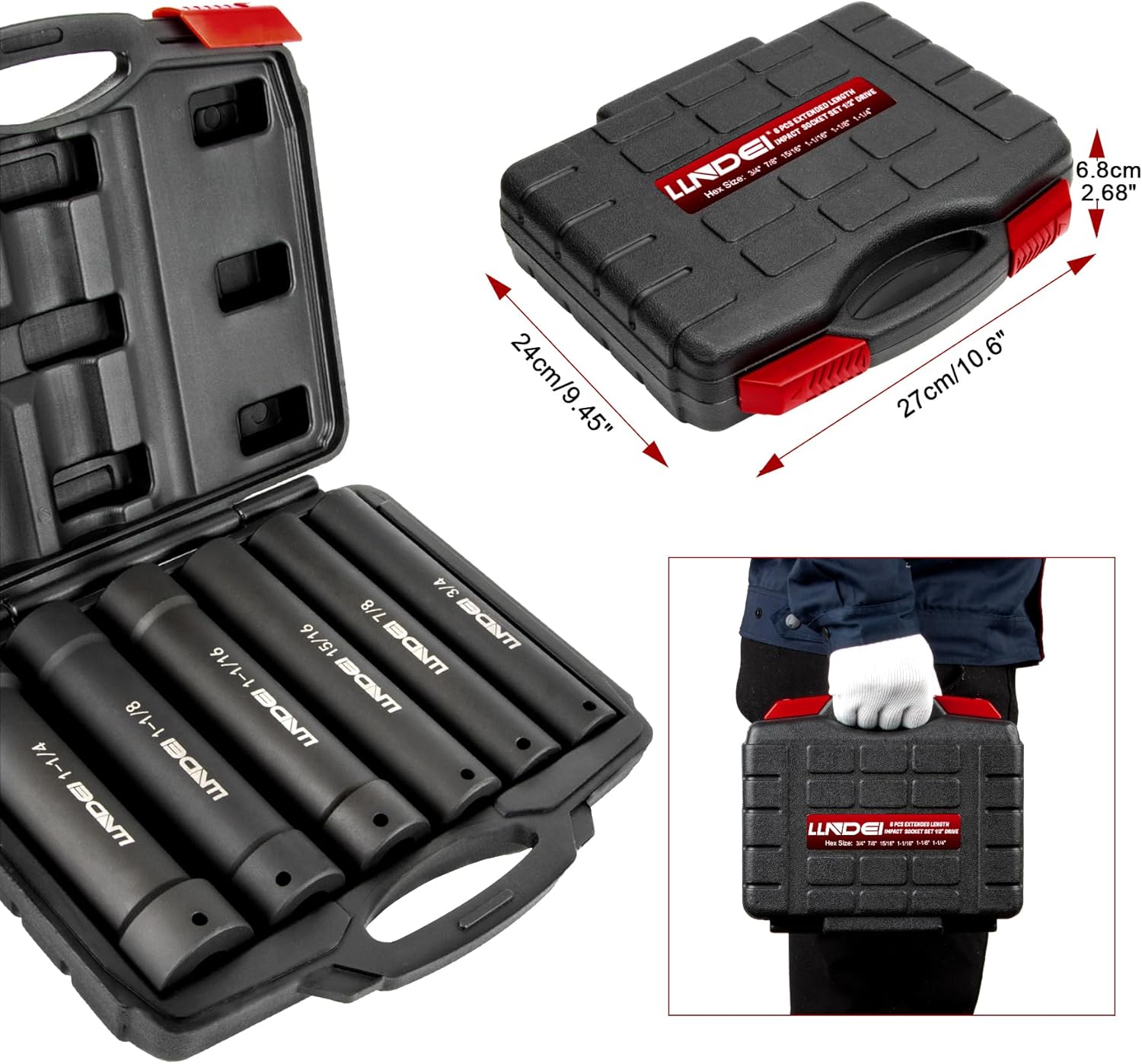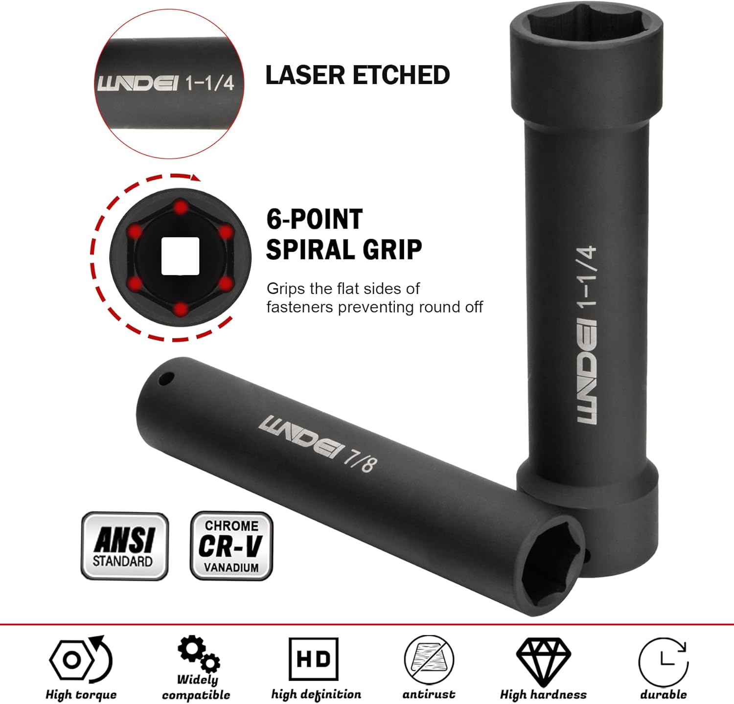 | Included Components | 1/2 Inch Drive Extended Length Impact Socket Set: 3/4", 7/8", 15/16", 1-1/16â, 1-1/8", 1-1/4" |