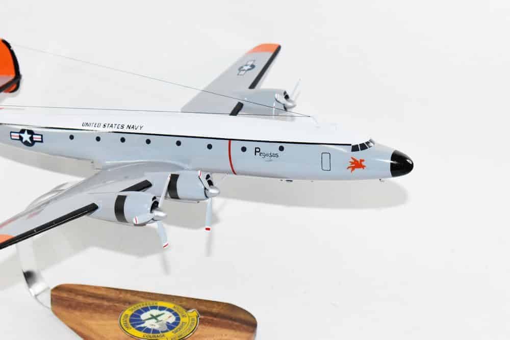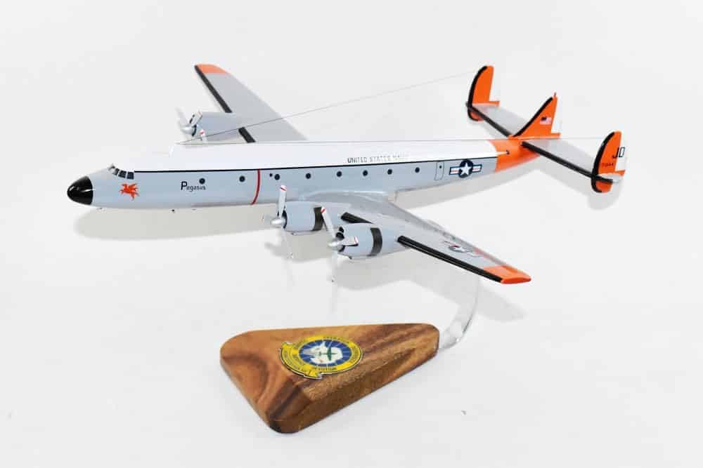 VX-6 Puckered Penguins 'Pegasus' 1965 C-121J Model Fly with the VX-6 Puckered Penguins 'Pegasus' with 1965 livery in this handcrafted C-121J model. Each piece is carved from wood and handpainted to provide a piece you'll love. Length - 16 inches; Width - 18 inches Made from Mahogany US Naval Aviator Owned Business Officially Licensed by Lockheed Martin The product is not intended to be used by children 12 years and younger. LOCKHEED MARTIN, CONSTELLATION, associated emblems and logos, and body designs of vehicles are either registered trademarks or trademarks of Lockheed Martin Corporation in the USA and/or other jurisdictions, used under license by Squadron Nostalgia Air Development Squadron Six (VX-6 or AIRDEVRON SIX, commonly referred to by its nickname, "puckered penguins") was a United States Navy Air Development Squadron based at McMurdo Station, Antarctica. Established at Naval Air Station Patuxent River, Maryland on 17 January 1955, the squadron's mission was to conduct operations in support of Operation Deep Freeze, the operational component of the United States Antarctic Program. Using the tail code XD, the squadron flew numerous fixed-wing aircraft and helicopters over the course of its existence—many of which were pioneering endeavors. For example, the first air link between Antarctica and New Zealand was established by men and aircraft of VX-6 in 1955. The following year, a ski-equipped R4D Dakota of VX-6 became the first aircraft to land at the South Pole. In 1961, the first emergency midwinter medical evacuation flight was conducted from Byrd Station to Christchurch. In 1963, an LC-130F Hercules of VX-6 made the longest flight in Antarctic history. In 1967, a United States Navy LC-130F of VX-6 completed the first scheduled winter flight to Antarctica, landing at Williams Field. VX-6 changed the tail code of its aircraft to JD in 1957, and was redesignated as Antarctic