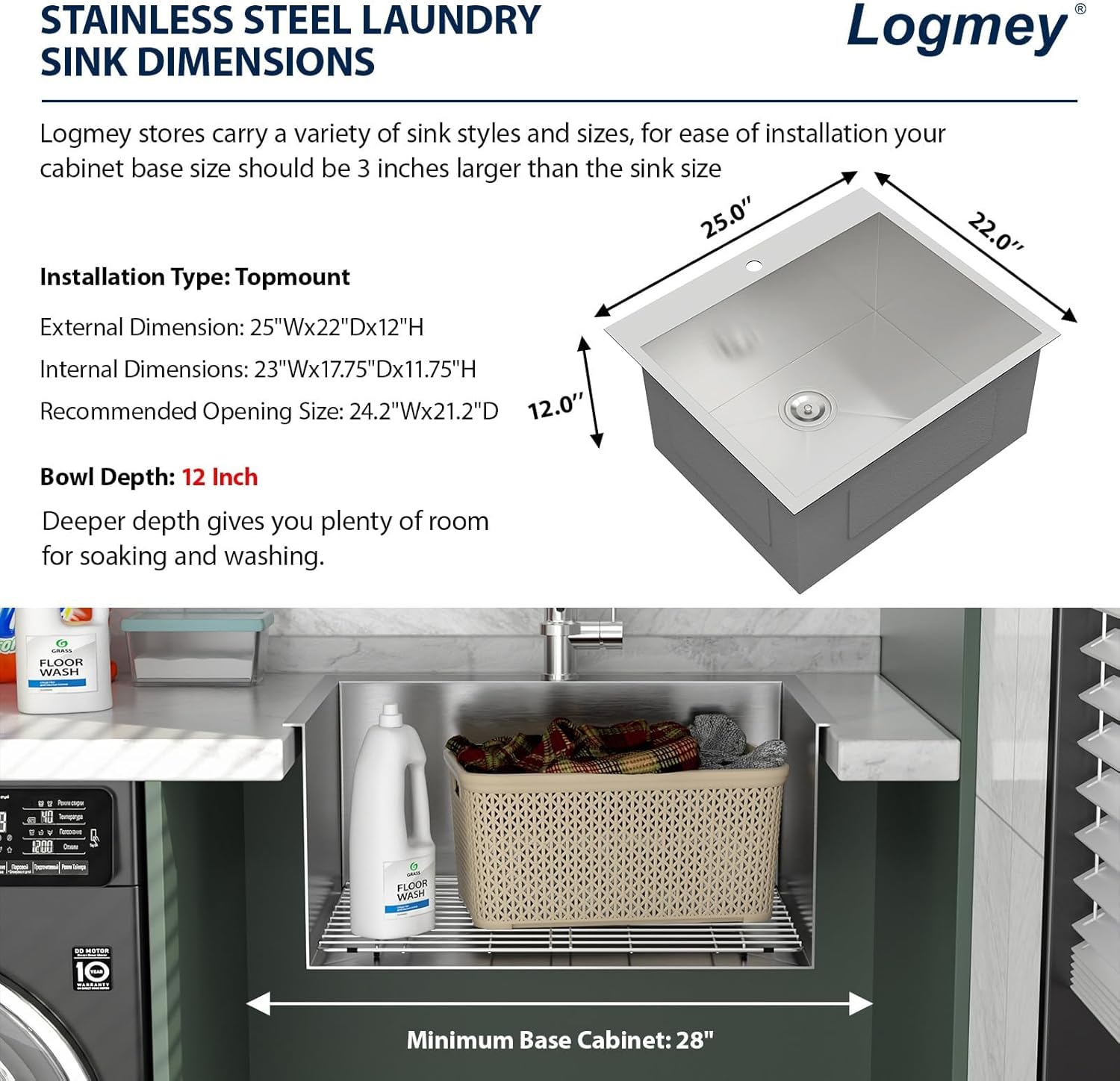 | Included Components | 25 Inch Laundry Sink Drop in, Bottom Grid and Drainer, Cut out Template and Installation Introduction, Roll-up Rack |