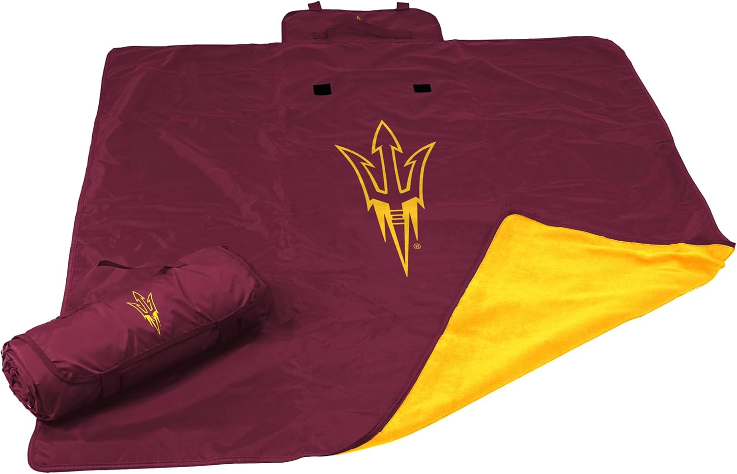 This Logo Brands All Weather Blanket is a perfect outdoor option for any season. With its water-resistant exterior, it can be used as a ground cover to keep dry or protect from the wind. The fleece underlining provides warmth and a soft seating area. Features a large logo complimented by a smaller logo on the roll up flap. Easily rolls up and secures with fasteners and carry handle for transportation.