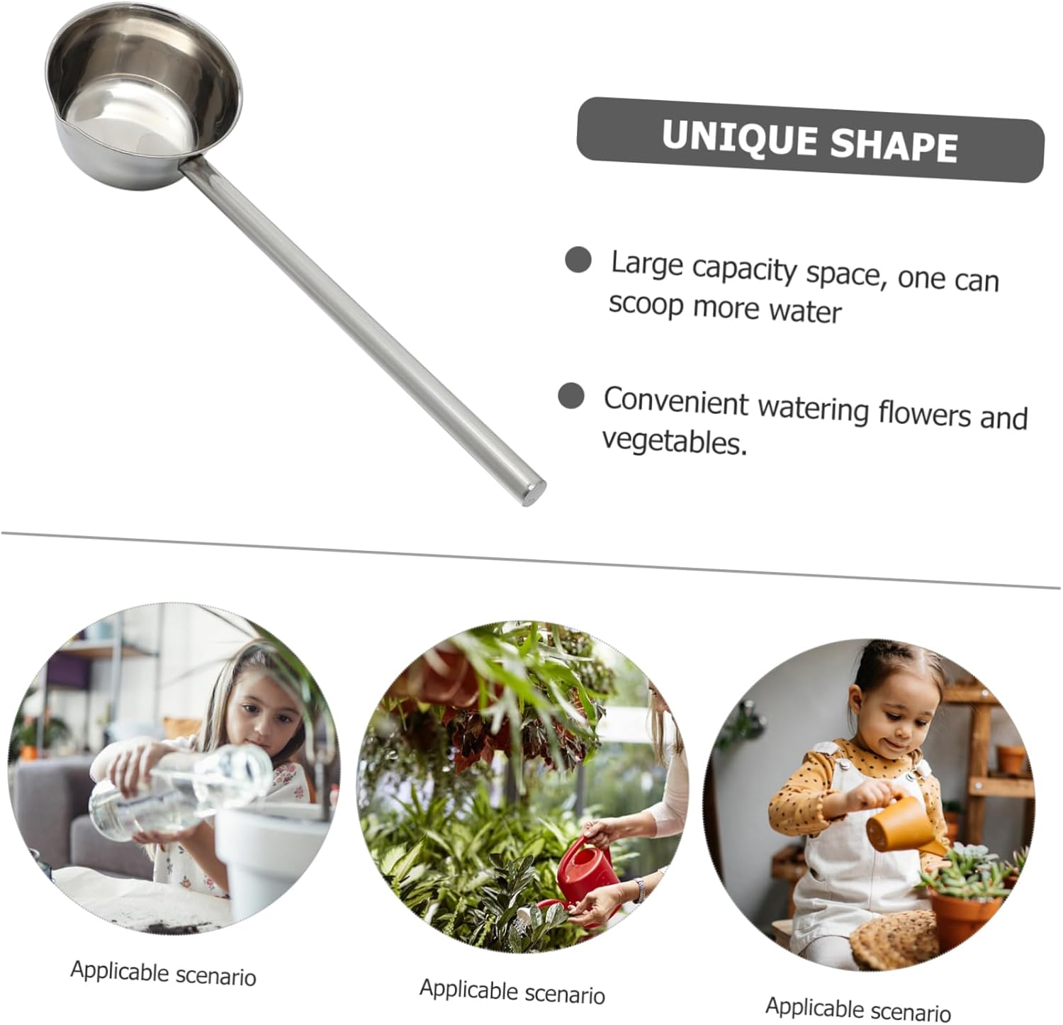 Package List 1 Ladle Features -Note: Spoon diameter is 18cm, handle length is 45cm serving spoons stainless steel. -Material:Stainless steel stainless steel ladle for home -Color:Silver serving soup ladle spoon -Size:58.00X18.00X9.00cm/22.79X7.07X3.54in long handle water ladle -It can be used to scoop water to clean vegetables, fruits, etc. class stainless steel material, integrated , long handle water spoon. -With ergonomic design, comfortable to hold and not easy to slipping off. and kitchen water ladle. -Stainless steel materials allow this spoon to touch water and food, can use it with ladle with long handle. -It can be widely used in homes, canteens, restaurants, rural areas, gardens and other places Stainless Steel Water Ladle. -It is simple , but in use, brings great convenience to you water spoon.Goods InformationStainless Steel Water Ladle The water spoon is easy to use and can be used to wash fruits and vegetables.household water scoop The water spoon is made of stainless steel material, and the fine details are .kitchen soup ladle This is a must-have item for the kitchen.water spoon long handle You can a very water scoop at a reasonable