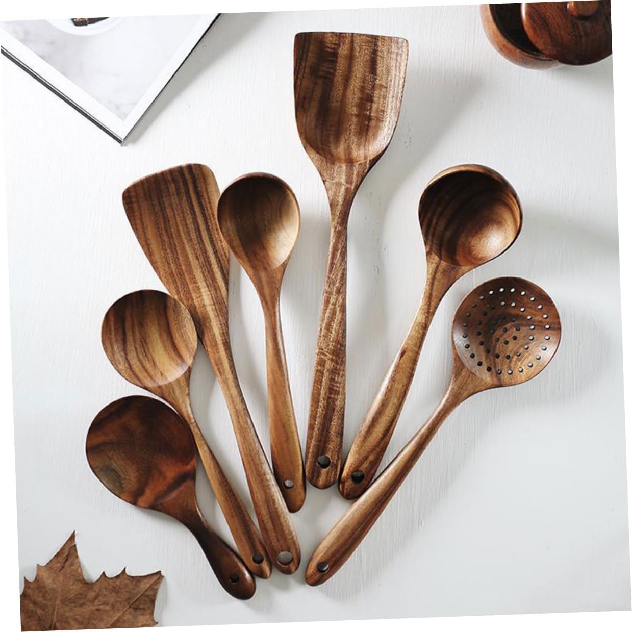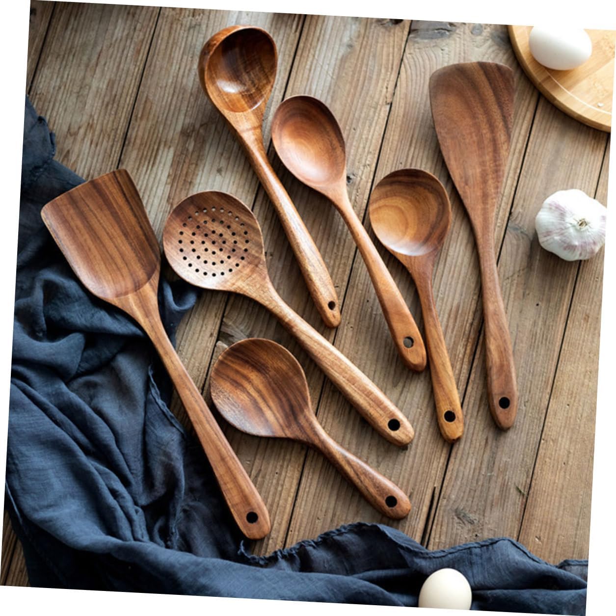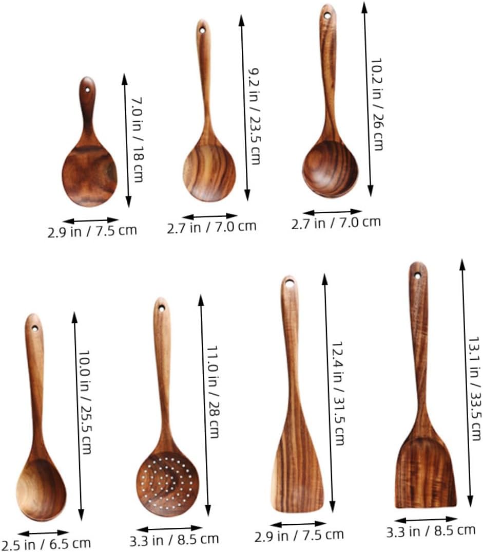 Package Include 1 x cooking spatula 1 x frying spatula 1 x colander spoon 1 x large soup spoon 1 x small soup spoon 1 x mixing spoon 1 x rice spoon Features - Size: 33.50X8.50X1.00cm/13.17X3.34X0.39in(cooking spatula) - Size: 18.00X7.50X1.00cm/7.07X2.95X0.39in(frying spatula) -Product Info:Wooden spatula set - Size: 31.50X7.50X1.00cm/12.38X2.95X0.39in(rice spoon) - Size: 26.00X7.00X2.00cm/10.22X2.75X0.79in(small soup spoon) -Color:Assorted Color -Material:Wood - Size: 28.00X8.50X2.00cm/11.00X3.34X0.79in(mixing spoon) - Size: 25.50X6.50X2.00cm/10.02X2.55X0.79in(large soup spoon) - Size: 23.50X7.00X1.00cm/9.24X2.75X0.39in(colander spoon) -This is a complete kitchen utensil kit, and you can present it to friends who love cooking or kitchen duties, they will love this elegant and practical kitchen accessory short handle wood spoon. -With their multifunctional design, these wood spoons can be used for stirring, flipping, and serving in various cooking tasks wood kitchen utensils. -The sleek and minimalist appearance of these utensils complements any kitchen style, making them a great addition to your kitchen wood coffee scoop.Goods Informationwood utensils for nonstick cookware The wood spoon set is a versatile and essential tool for any kitchen.grain spoon The fine craftsmanship a comfortable grip and prevents any damage to your cookware.household salt spoons This set includes a variety of kitchen utensils, allowing you to meet all your cooking needs.Short Handle Tea Spoons Made from natural wood, it is not only safe but also adds a touch of elegance to your cooking experience