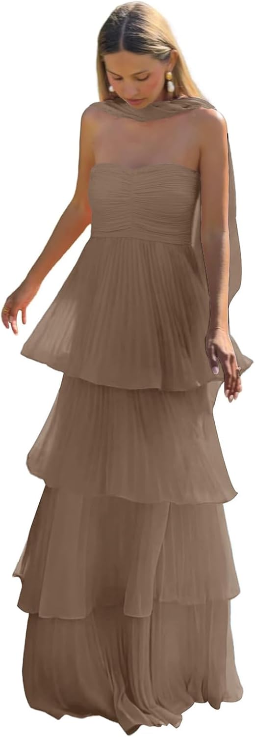 | Embellishment Feature | 100% handmade simple wedding guest dress, floor length tiered bridesmaid dresses with scarf, high waist corset prom party dress, sleeveless elegant wedding dress |