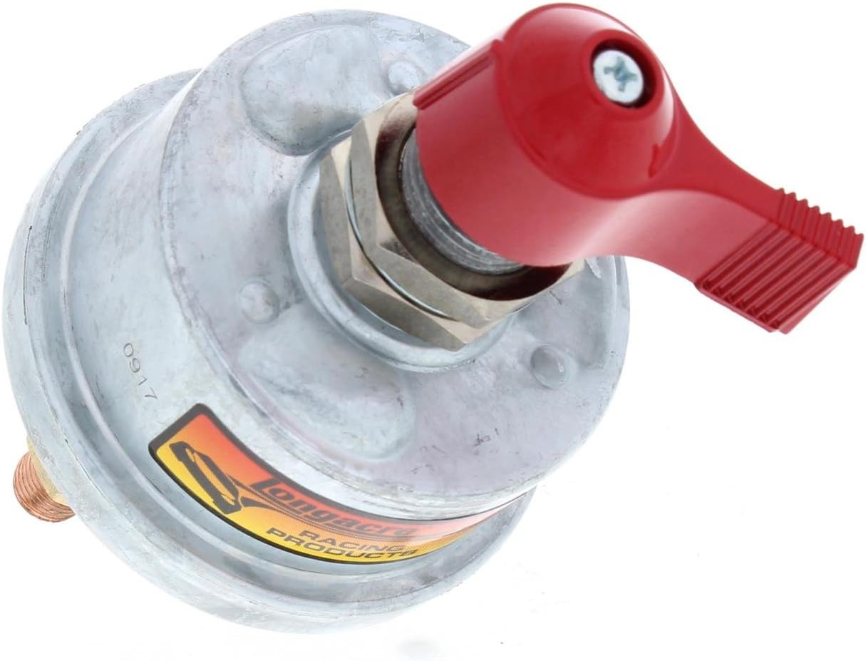 Longacre Battery Disconnect Switches LA4575 Battery Disconnect Switch (no panel) is 2 terminal style for cars without alternator. Has a bright red handle. Easier to find in an emergency. Prevents battery drain. 175 Amp Continuous Rating, 6-36 Volt, 1000 Peak. NEW LA45753 Weatherproof Battery Disconnect Switch (no panel) is 2 terminal style for cars without alternator that is completely sealed and weatherproofed with a tough, waterproof polymer coating. Keeps out dirt, dust and moisture that can turn a critical switch into a useless dead end connection, possibly putting you out of a race. 175 Amp Continuous Rating, 6-36 Volt, 1000 Peak. LA45761 Battery Disconnect Switch with Panel is 2 terminal style for cars without alternator. Has sharp color graphics to match other panels with a bright red handle. Easier to find in an emergency. Prevents battery drain. 175 Amp continuous rating, 6-36 Volt, 1000 peak. LA4578 Battery Disconnect Switch (no panel) is 4 terminal style for cars with or without alternator. Has a bright red handle. Easier to find in an emergency. Prevents battery drain. 175 Amp Continuous Rating, 6-36 Volt, 1000 Peak. LA45785 Battery Disconnect Switch with Panel has sharp color graphics to match other panels and is 4 terminal style for cars with or without alternator. Has a bright red handle. Easier to find in an emergency. Prevents battery drain. 175 Amp Continuous Rating, 6-36 Volt, 1000 Peak. LA45748 Economy Battery Disconnect Switch has bright red removable key, easier to find in an emergency, prevents battery drain, 12 Volt 350 Amp Continuous Rating, 500 Amp Peak.