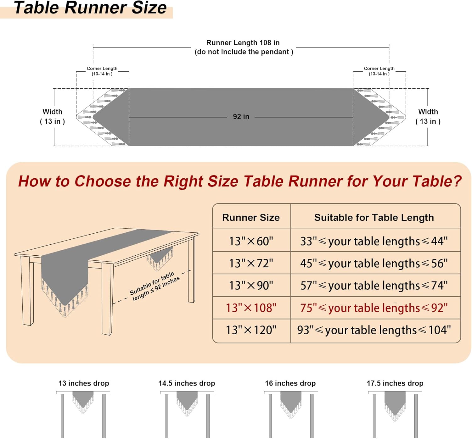 | Included Components | 108" Table Runner |