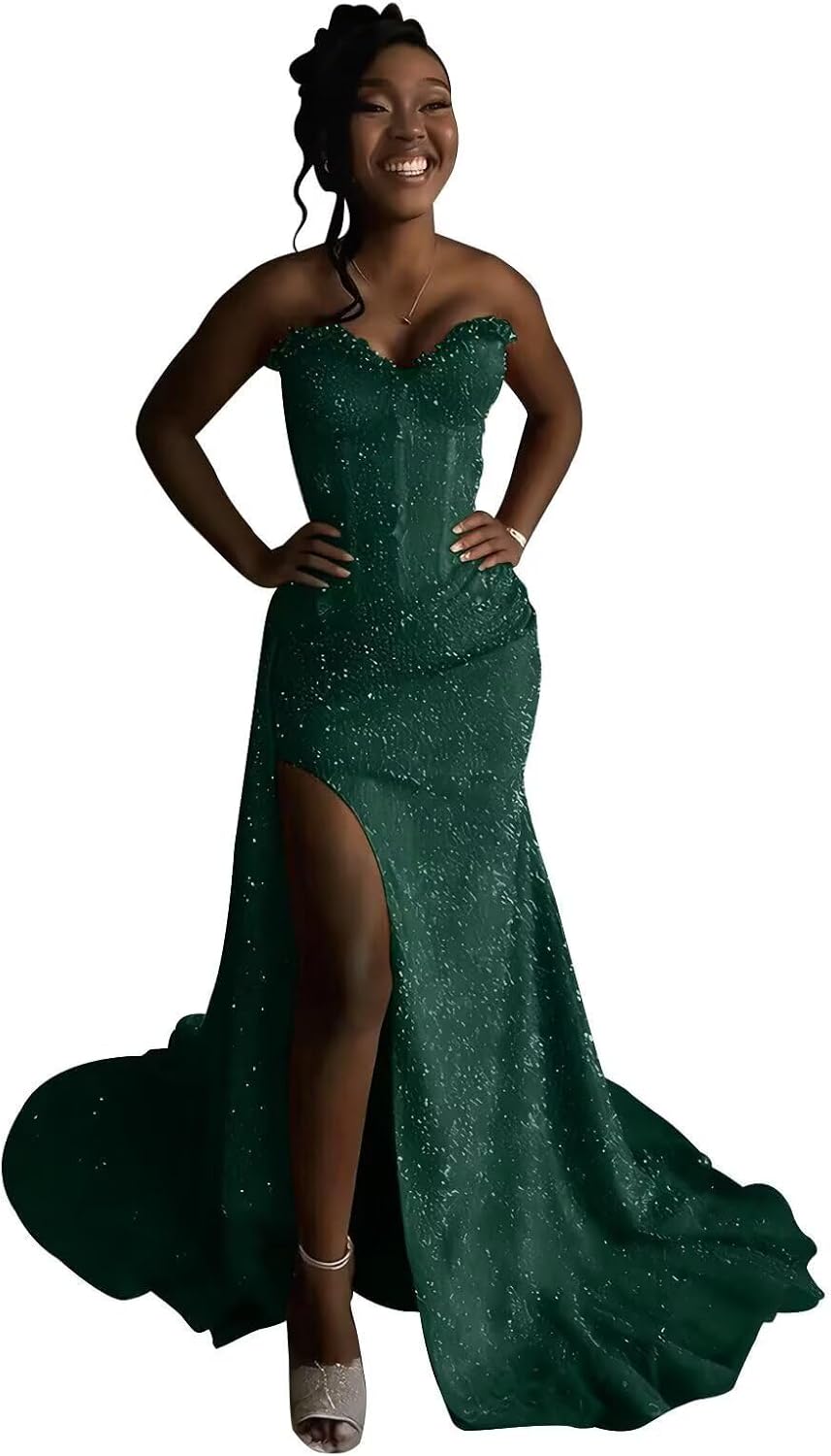 | Embellishment Feature | Corset, Mermaid, Sparkly, Strapless, with Slit |