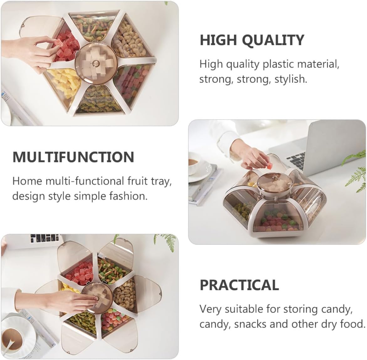 Package Include 1 x Snack Box Features -Note: The style of lid is style Transparent Candy Holder -Product Info:Fruit box fruit plate -Material: Plastic -Size: Approx. 30.5 x 30.5 cm / 12.01 .01 x 4.72 inch -Color: Chocolate Color - Perfect for storing candies, biscuits, chocolate, lollipops, etc Snack Plate with Lid. - Unique appearance, which can be a wonderful decoration to your desktop Dry Fruit Plate. - Premium reusable plastic material, strong and , . - for sharing dried fruit or snacks with guests during leisure time or at parties Desktop Candy Jar. - Compact size, without taking up too much space when putting on the desk.Goods DescriptionDesktop Storage Tray Creative lotus shaped design makes it more attractive and adorable.Desktop Candy Jar It is perfect for home or restaurant use.Candy Storage Container material can ensure its durability and practicability.Snack Plate with Lid This item is a candy compartment box, manufactured with premium reusable plastic materials, so that it