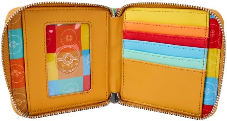 This zip around wallet features five fan favorites across its color-blocked design. Look closely, and you’ll find Pikachu, Bulbasaur, Squirtle, Charmander, and Eevee! This wallet has plenty of room to store your training essentials and makes an adorable addition to any outing. Features: Vegan leather (polyurethane) Zippered closure 5 slots for holding cards Die-cut ID window Coordinating inside lining Dimensions: 4.25”W x 4.25”H This wallet is an officially licensed.