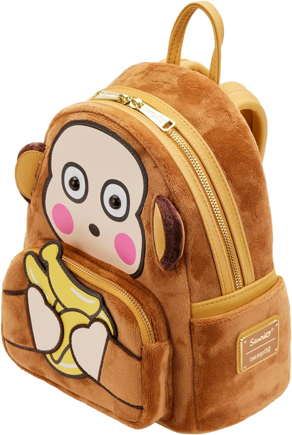 The Loungefly Sanrio Monkichi Cosplay Mini Backpack is ripe for the picking! This stylish, banana scented mini backpack can fit a bunch of snacks and necessities. Monkichi sure has his hands full, but you could store your items in this bag to keep from juggling everything. The tan shoulder straps, zipper, handle, and trim accent the design perfectly. Don’t forget the banana enamel zipper charm!