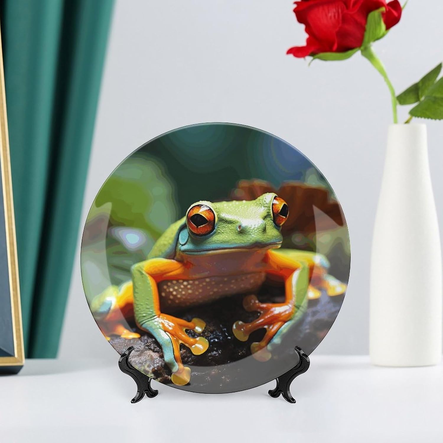 Our versatile ceramic Lovely Tree Frogs plates are made of smooth ceramic material. The lightweight bone china plates can be easily placed anywhere you like, showcasing their decorative charm.This bone china dessert plate is available in four sizes: 6 inches, 7 inches, 8 inches, and 10 inches, making it an ideal choice for display items.Personalized decorative plates, perfect for displaying handicrafts, are an ideal choice for home décor. This vertical ceramic plate makes a wonderful gift for housewarmings, anniversaries, weddings, birthdays, Thanksgiving, New Year's, or any holiday.This French country-style ceramic plate is suitable for decorating or using in living rooms, offices, hallways, dining rooms, entrances, hotels, holiday homes, and other places.