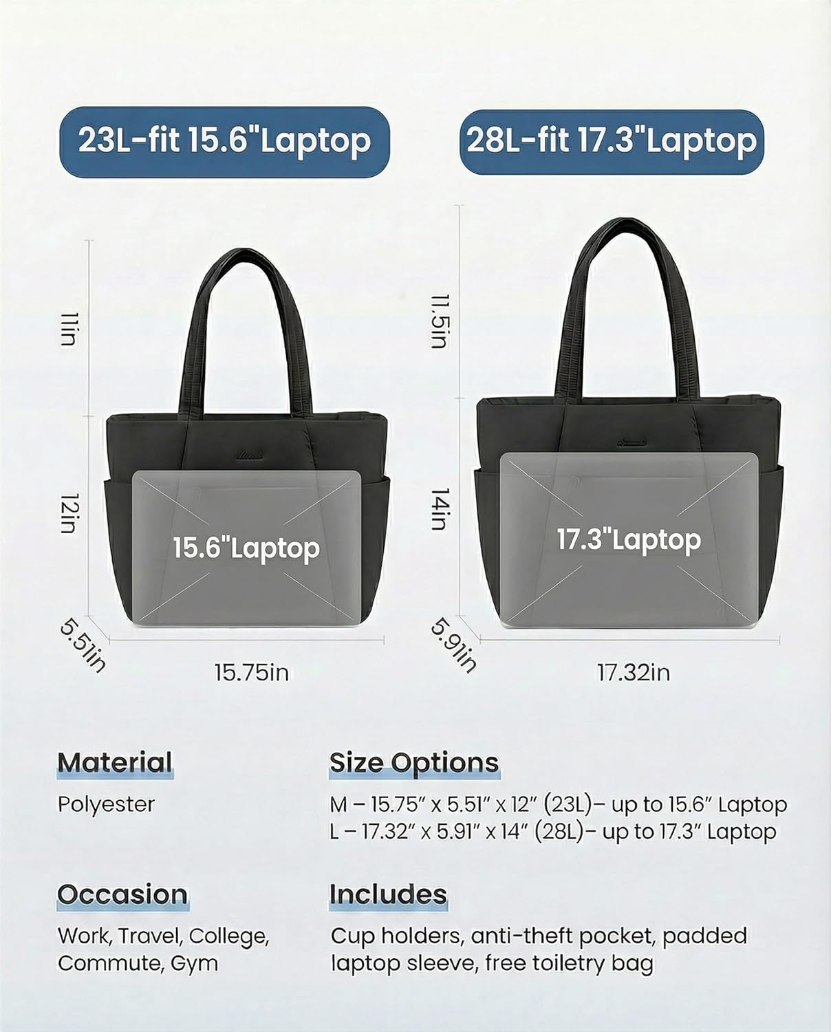 LOVEVOOK Chic Tote Bag for Women PRODUCT ATTRIBUTION Content: Chic Puffer Tote Bag for Women blending style and functionality effortlessly. Material: Polyester Color: Black/Khaki/Pink/Off-white Upgrade your accessory game with the LOVEVOOK Stylish Puffer Tote Bag for Women. Crafted from durable polyester, this chic tote is more than just a beautiful design; it meets all your daily needs. Whether you’re heading to the office, hitting the gym, or embarking on a short trip, this versatile bag will be your go-to companion. With multiple pockets for unruly clutter and a lightweight structure, this laptop tote bag not only makes organization effortless but also radiates style. The unique quilted exterior ensures you stand out while remaining comfortable as you carry your essentials. Perfect for any occasion, this tote bag makes an exceptional gift that will surely delight your loved ones. Don’t miss out on this must-have accessory!