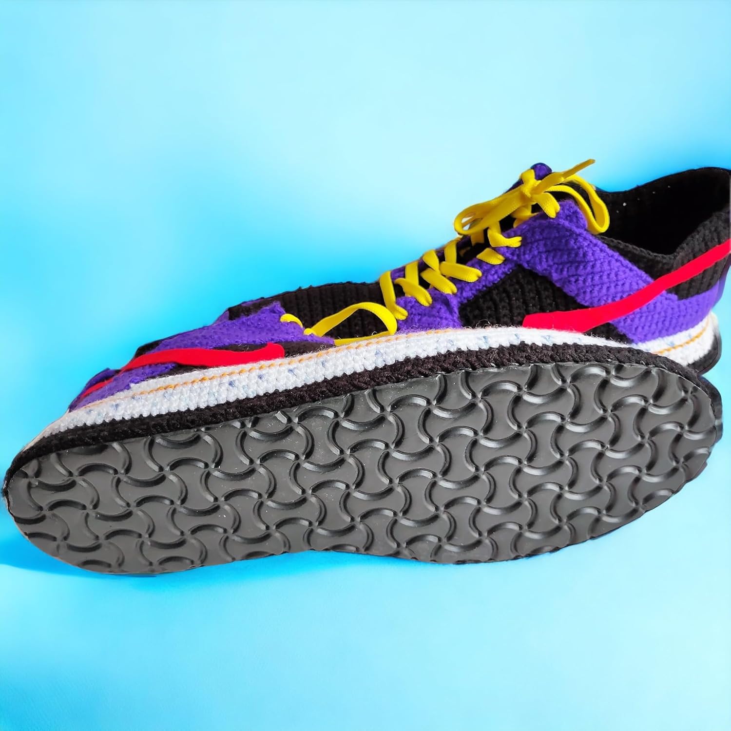 Step into cozy luxury with our Handmade Purple Low-Top Knitted Sneaker Slippers — a perfect fusion of retro basketball design and modern comfort. Crafted from soft organic wool and breathable cotton, these unisex slippers deliver warmth, durability, and timeless streetwear appeal. Featuring a sturdy non-slip EVA sole for reliable grip and long-lasting wear, these crochet slippers are perfect for indoor relaxation or casual outings. Each pair is carefully handmade, ensuring comfort, flexibility, and an authentic sneaker-inspired look that elevates your home style. With their iconic retro vibe and vibrant purple tone, these slippers make an unforgettable gift for sneaker fans, Hypebeast lovers, and cozy lifestyle enthusiasts. Whether for birthdays, holidays, or everyday comfort — they bring fashion, warmth, and craftsmanship together.