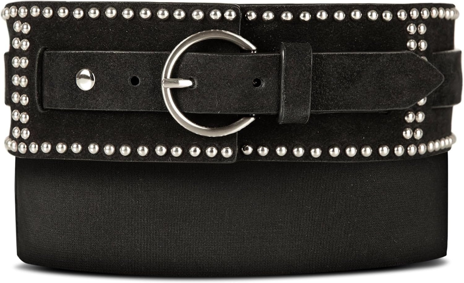 Wrap your look in a hint of rock-and-roll romance with this Lucky Brand Wide Leather Belt with Studs. The wide 2" strap feels luxuriously substantial, while a metal center-bar buckle gleams in a softly brushed nickel finish. Tiny studs trail down the length like scattered starlight, adding subtle sparkle and an effortlessly cool edge that elevates everything from lived-in denim to a flowing dress.